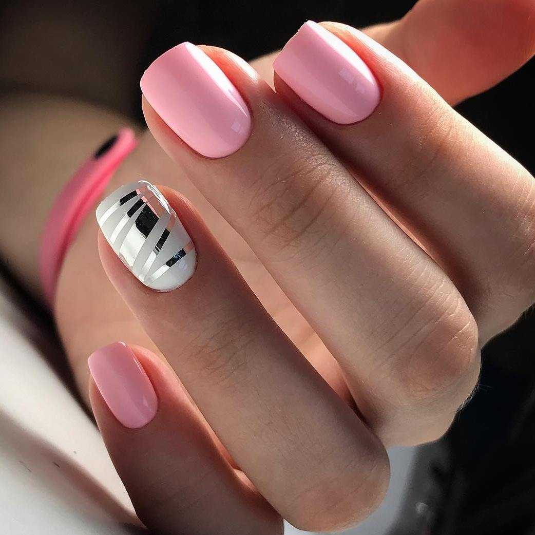Так уж сложилось, что ходить с короткими ноготками гораздо удобнее в плане повседневных забот, работе за компьютером, уходе за маленьким ребенком. Большинство женщин выбирает короткую длину ногтей: овал, мягкий квадрат, круглые, на них так же можно делать интересные красивые дизайны. На светлые короткие ногти можно сделать перламутровую втирку, акцентный цветок, диагональные или вертикальные полоски.