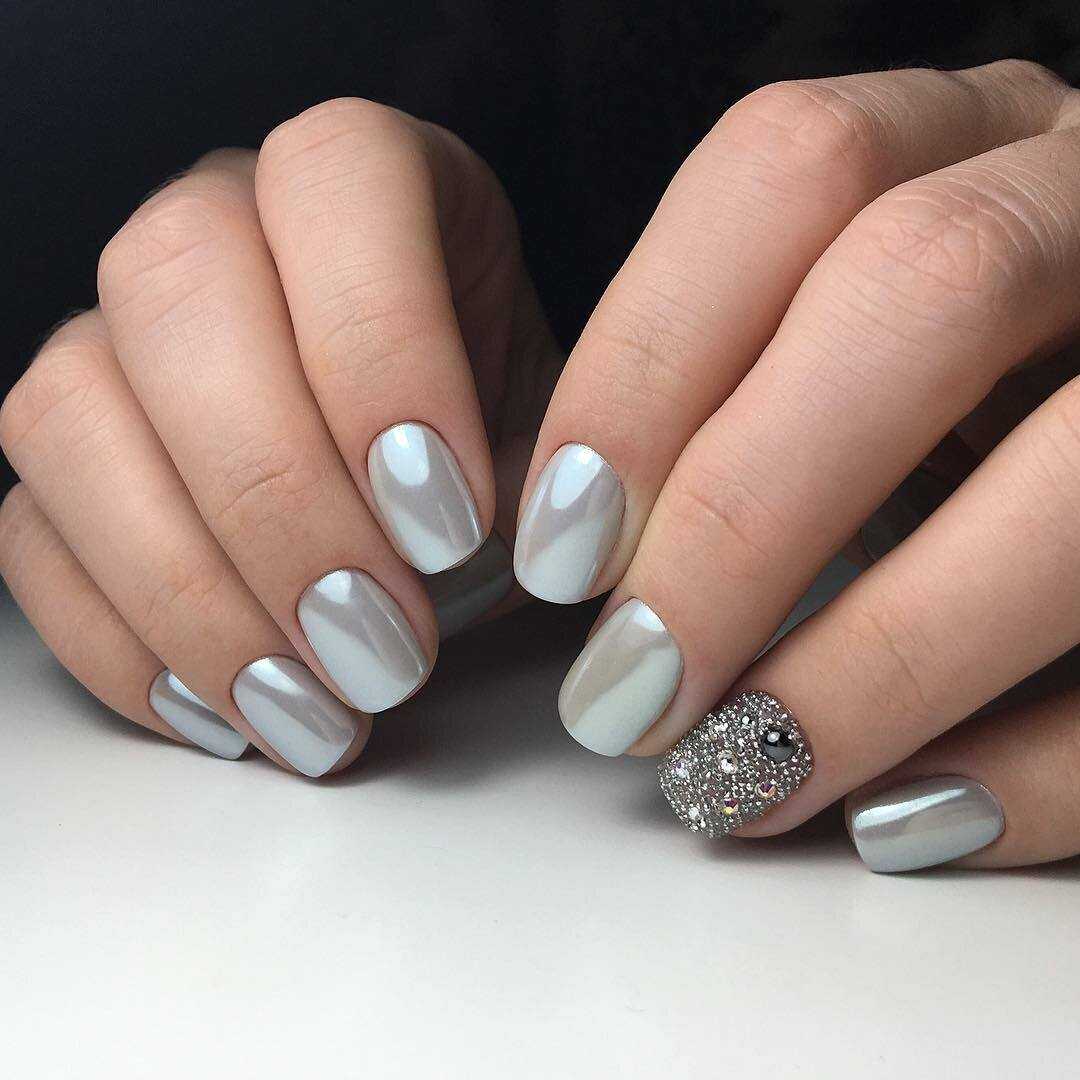 Довольно прост в работе, сделать сияющее покрытие на ногтях можно даже в домашних условиях. Кстати, для вдохновения можно ознакомиться с идеями маникюра с глиттером.