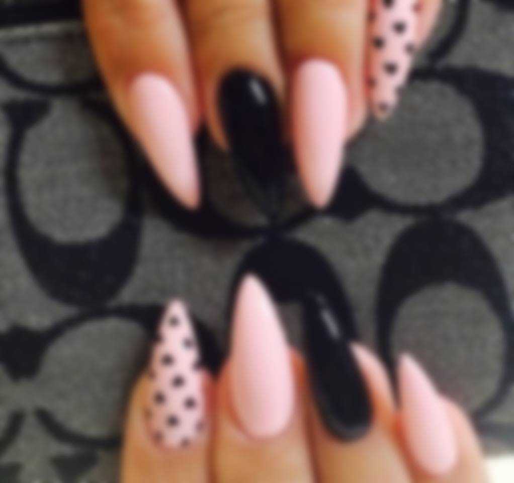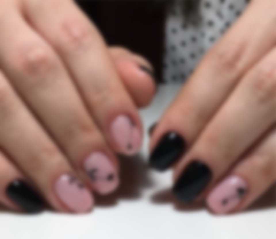 - С одной стороны, сделайте ногти в оттенках розового, а с другой — черного.
