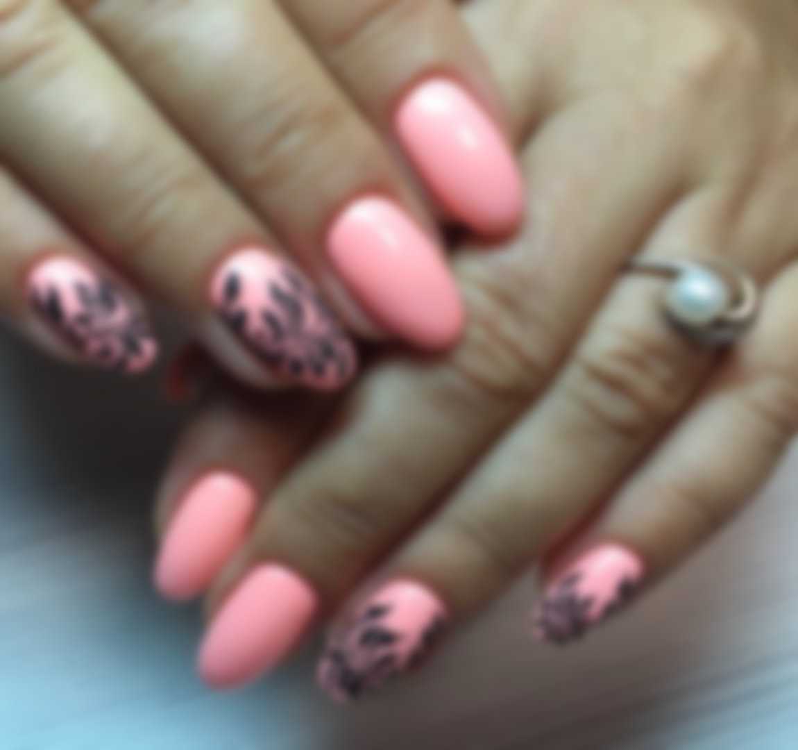Такие розовые ногти с черным рисунком радуют своих обладательниц.