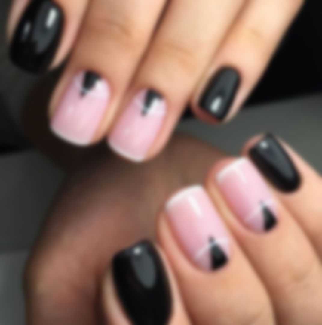 Ниже мы подобрали несколько идей маникюра в розовых тонах с вкраплением черного. Посмотри, насколько эффектно смотрится френч — мы бы не догадались так интересно скомбинировать эти два цвета. Чтобы усилить глубину черного, в некоторых дизайнах можно использовать черный песок или добавить немного серебряного глиттера.