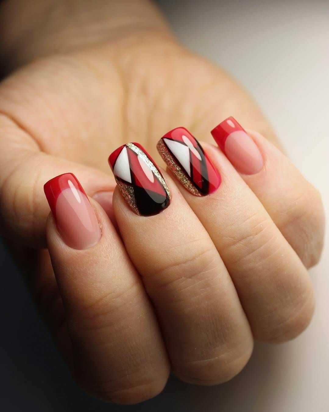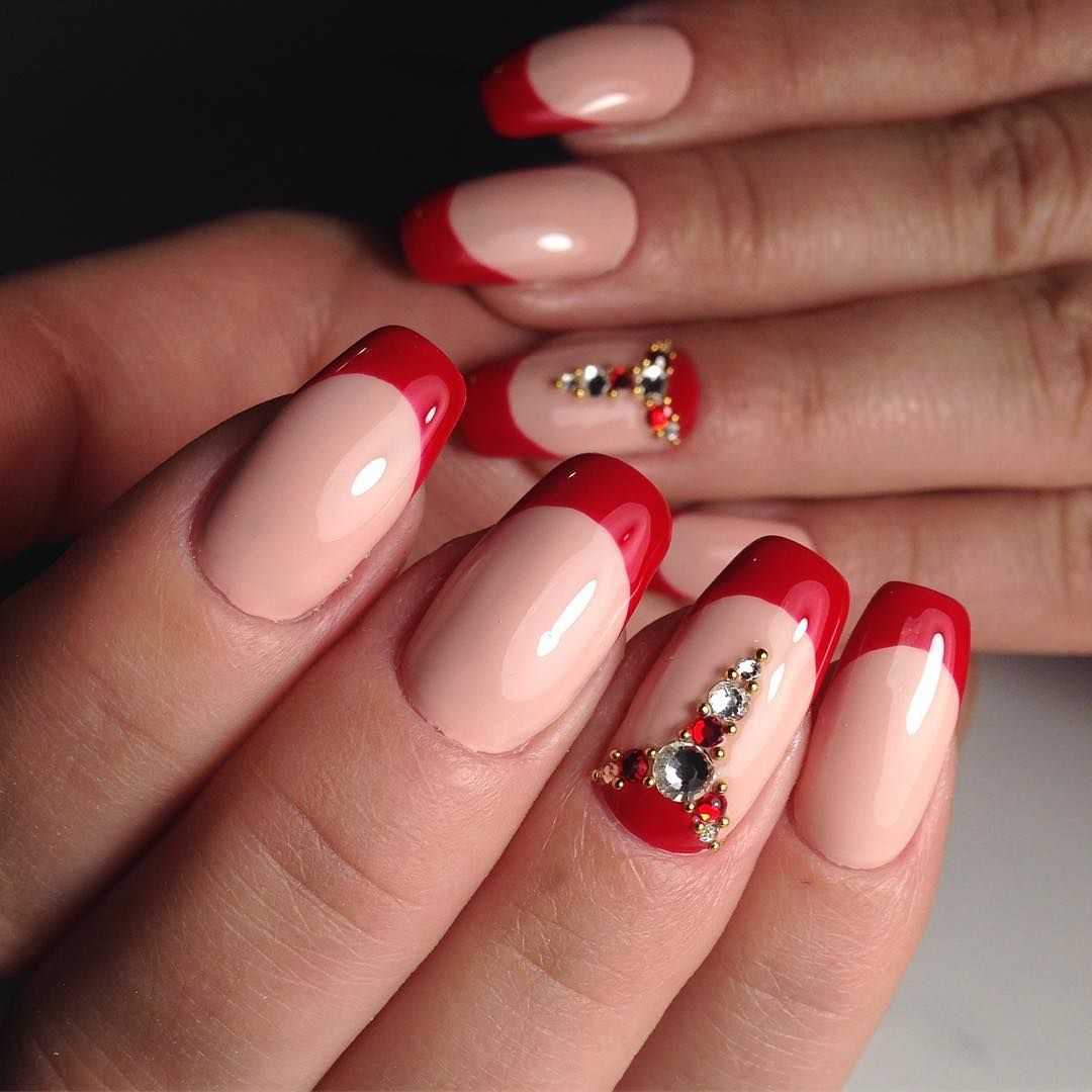 Ультрамодный маникюр френч 2023 года представляет собой почти классический дизайн. Вот только выступающий край ногтя окрашен не в белый, а в красный цвет. Такой вариант выглядит очень естественно и при этом ярко и неординарно, ведь сочетает в себе сразу два классических приема – френч и красный лак.