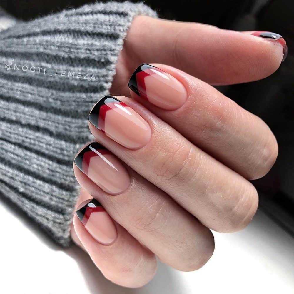 Маникюр омбре пользуется огромной популярностью среди девушек. Но если раньше плавный переход создавался по всей поверхности ногтя, то в цветном френче для этого выделен край ногтевой пластины.