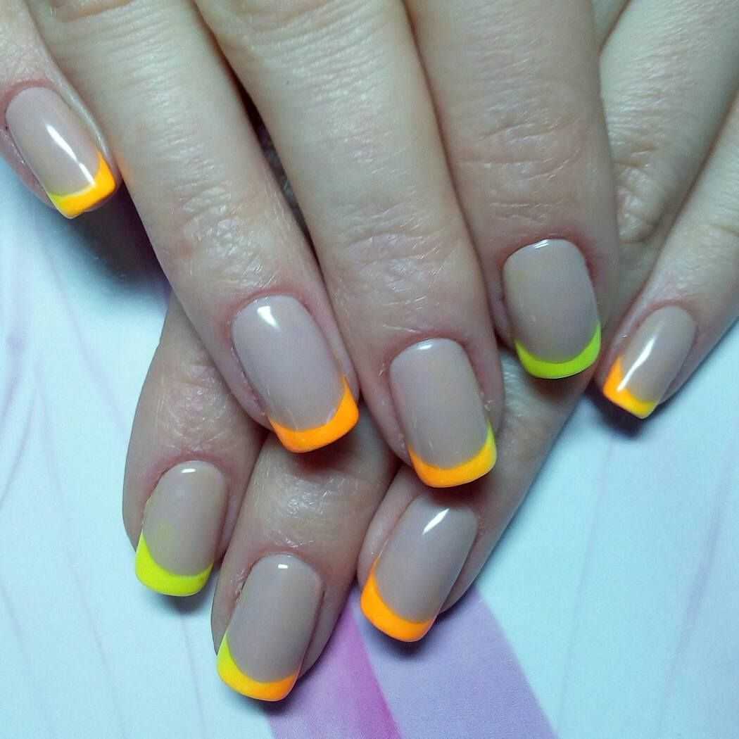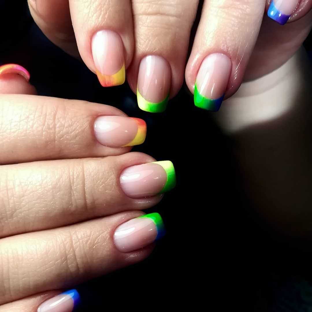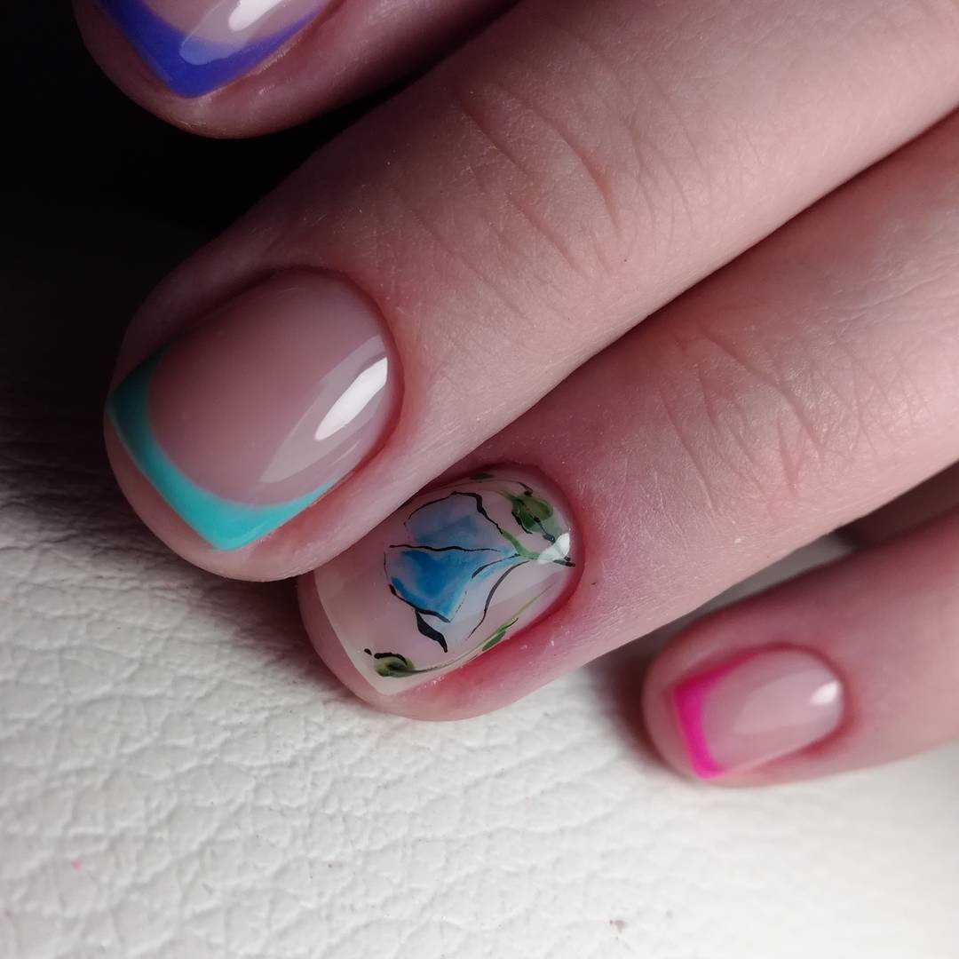 Цветной френч – отличное решение для летних нейл-артов. Дизайн содержит в себе сразу несколько оттенков, которые отлично вписываются в яркие образы.