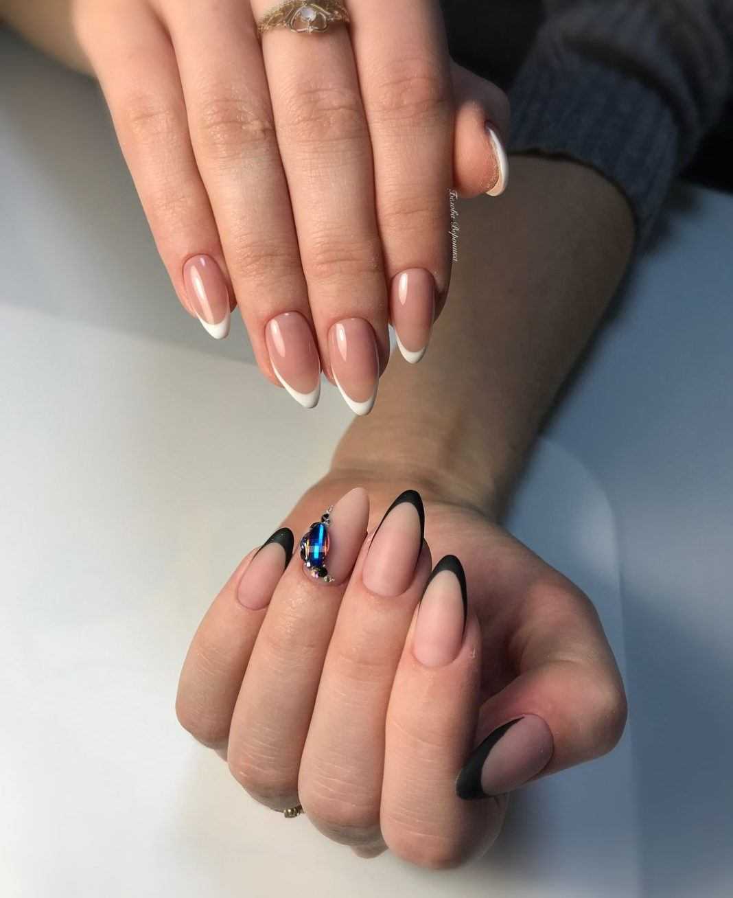 Чтобы принять окончательное решение, обязательно изучайте доступные варианты дизайна, смотрите фото разных видов покрытия, например, френч на миндалевидных. Современный красивый маникюр со стразами подойдет как молодым девушкам, так и взрослым женщинам, которые за смелые эксперименты, привыкли к всеобщему вниманию.