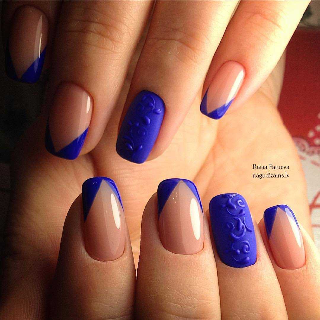 Любите голубой цвет? Маникюр в стиле «камуфляж», выполненный голубыми и синими тонами, смотрится очень необычно и оригинально.