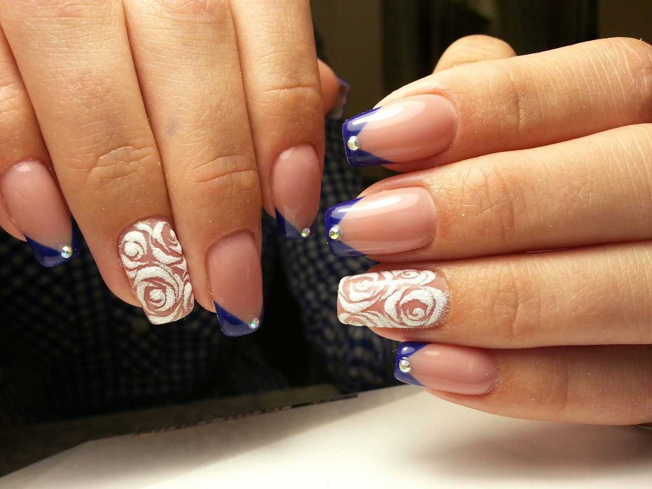 Когда хочется чего-то особенного, то приходит время дизайнерского маникюра. Френч украшается стразами, рисунками или узорами.