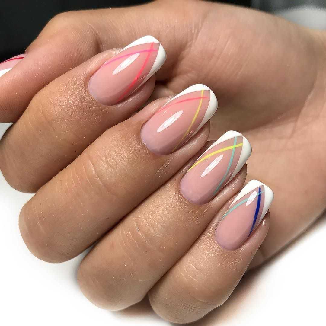 Классический французский дизайн – не единственный доступный вариант. Если такой декор кажется вам устаревшим, включите фантазию, откажитесь от любых стереотипов, используйте актуальные цвета, их оттенки. Поменяйте острые ногти овальной формы на квадратную форму или мягкий квадрат. На яркий маникюр французского дизайна можно применить необычный, молодежный тренд, используя несколько секретов: