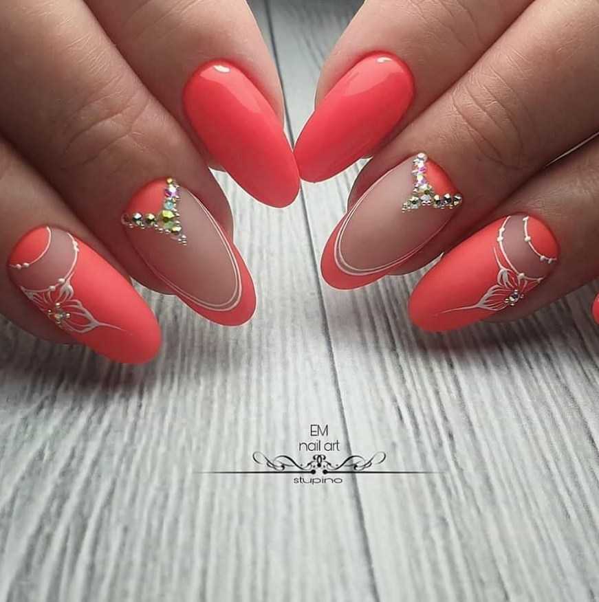 Коралловый маникюр с дизайном