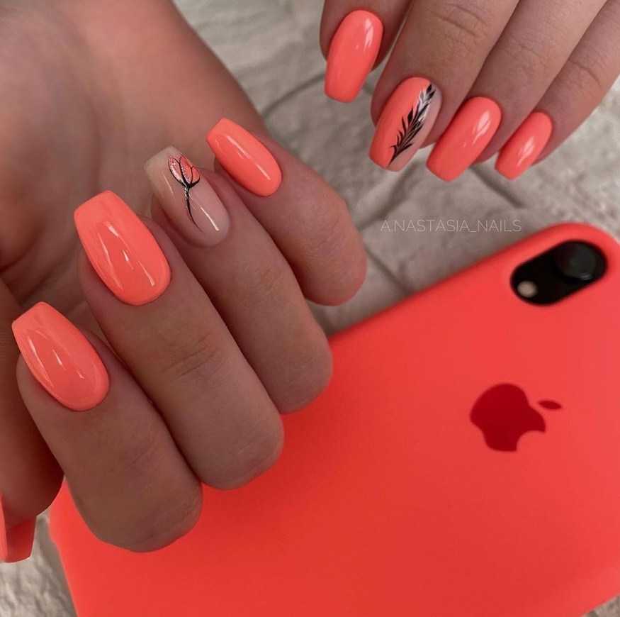 Стильный коралловый маникюр с черным цветом 2020