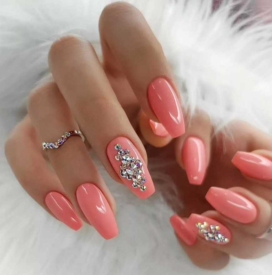 Блестящие ногти кораллового цвета