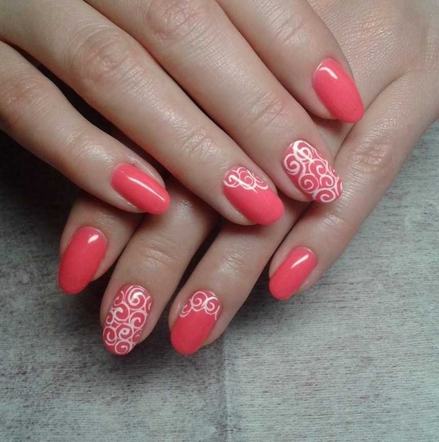 Кораллово-белый маникюр