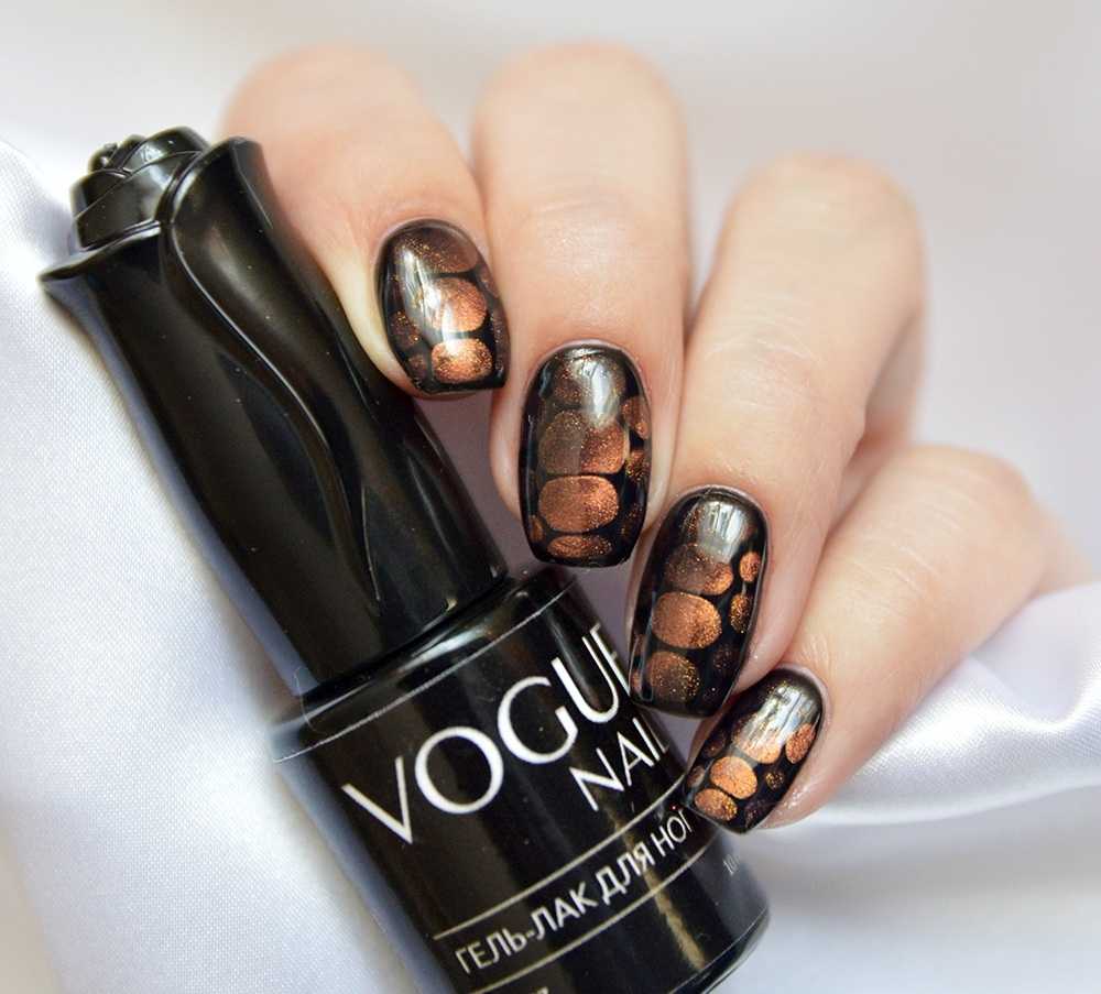 - Один из самых простых в собственном исполнении дизайн. На просушенный матовый топ в неопределенном порядке наносятся капли, высушиваются до того, как растекутся.