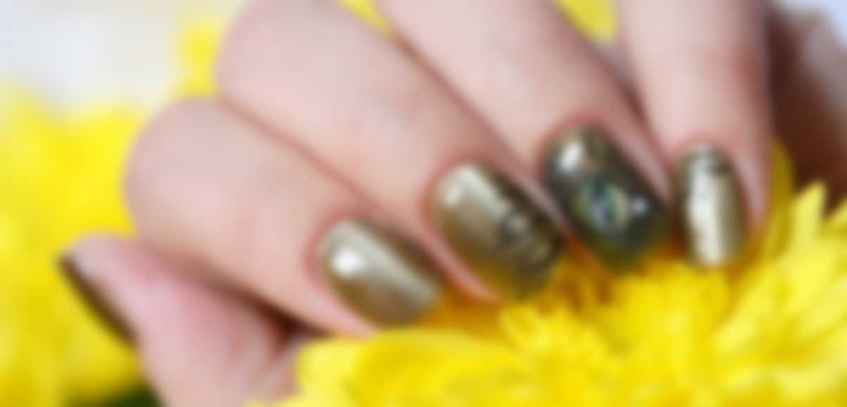 Благородные драгоценные металлы, будь то золото или серебро, всегда в моде. Не исключением является и дизайн ногтей под стать ювелирным украшениям. Что касается кошачьего глаза, то металлические оттенки здесь смотрятся по-особенному, совершенно необычно и даже чарующе.