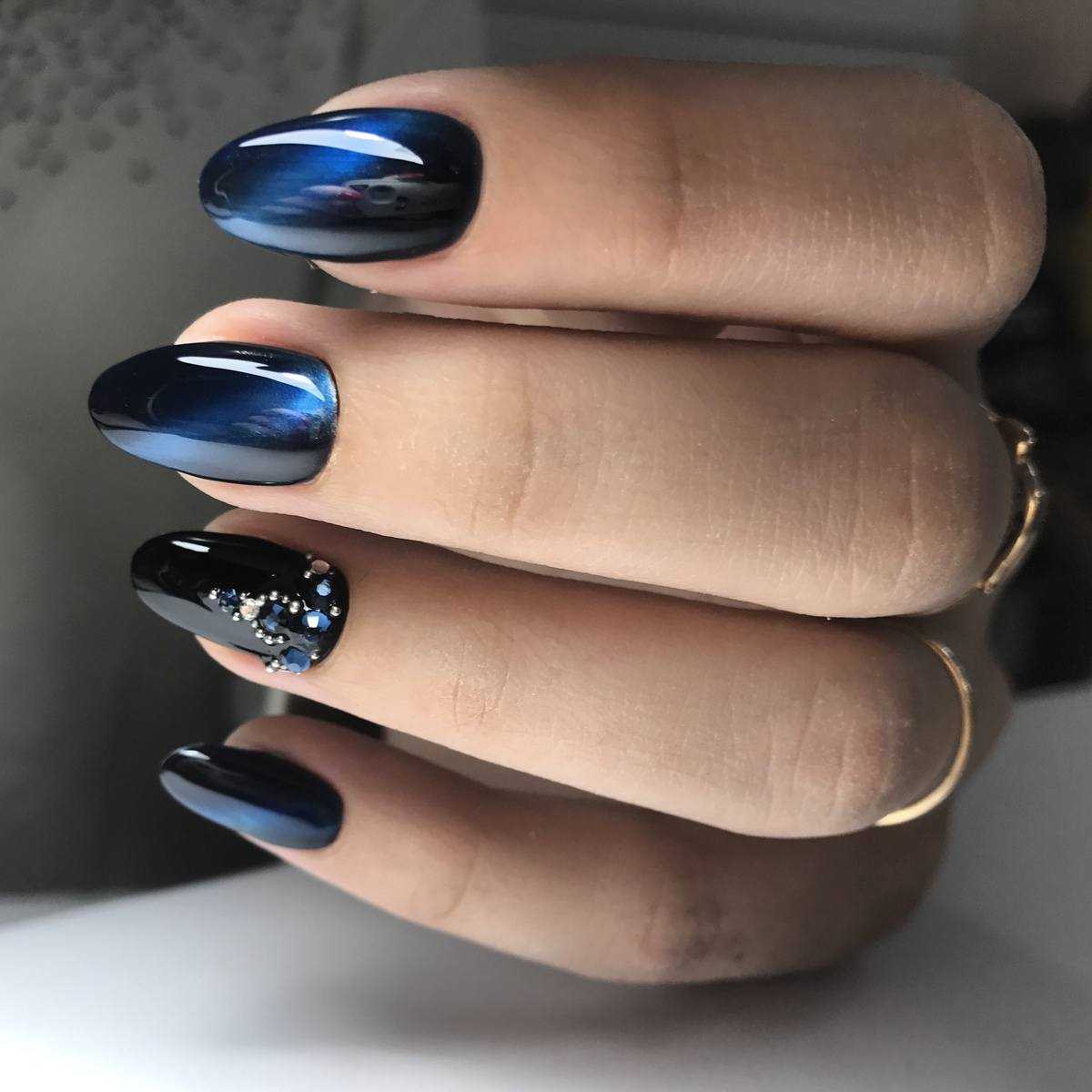 Обычно женщины избегают слишком темных оттенков. Однако, при использовании данной техники, краски обретают глубину, очаровывающее звучание. И уже черный не кажется тусклым, он завораживает своими переливами, а синий напоминает элитные драгоценности – сапфиры, бриллианты.