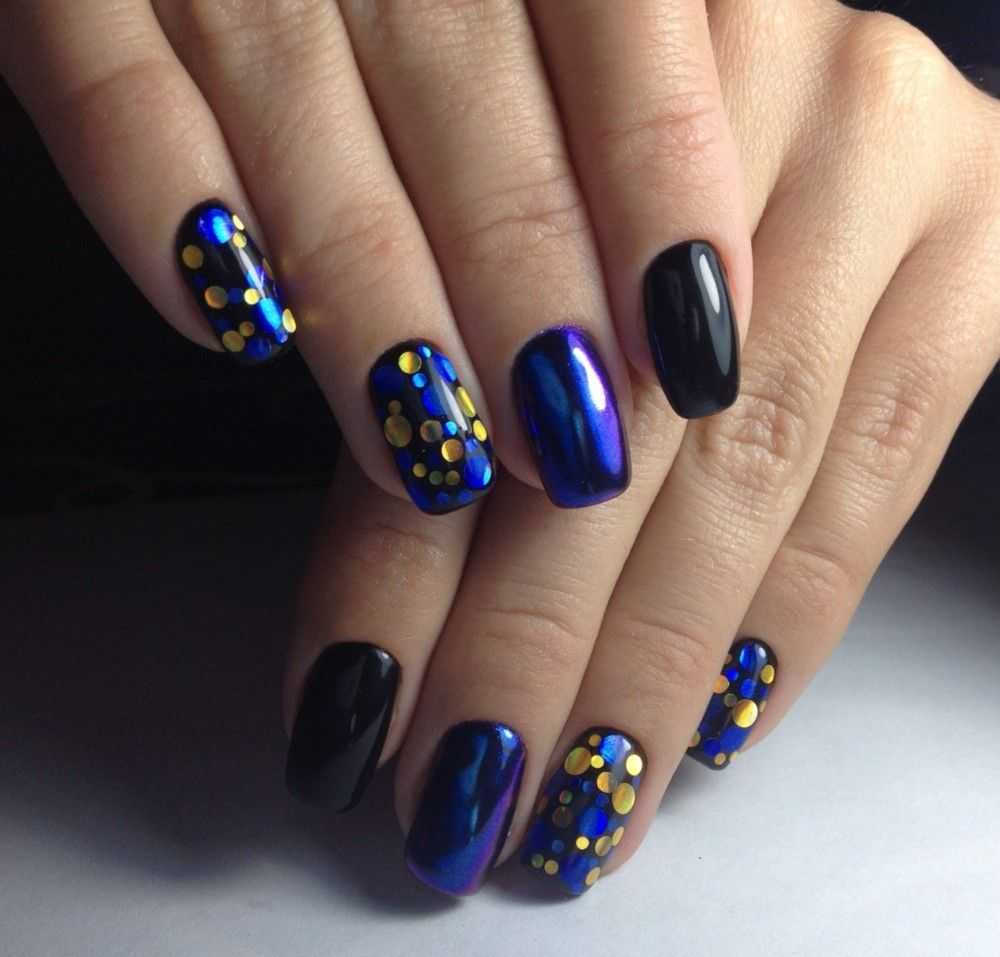 Для квадратной формы выбирайте глубокие тона, например, космический синий и дополняйте различными украшениями: блёстками, рисунками, стразами.