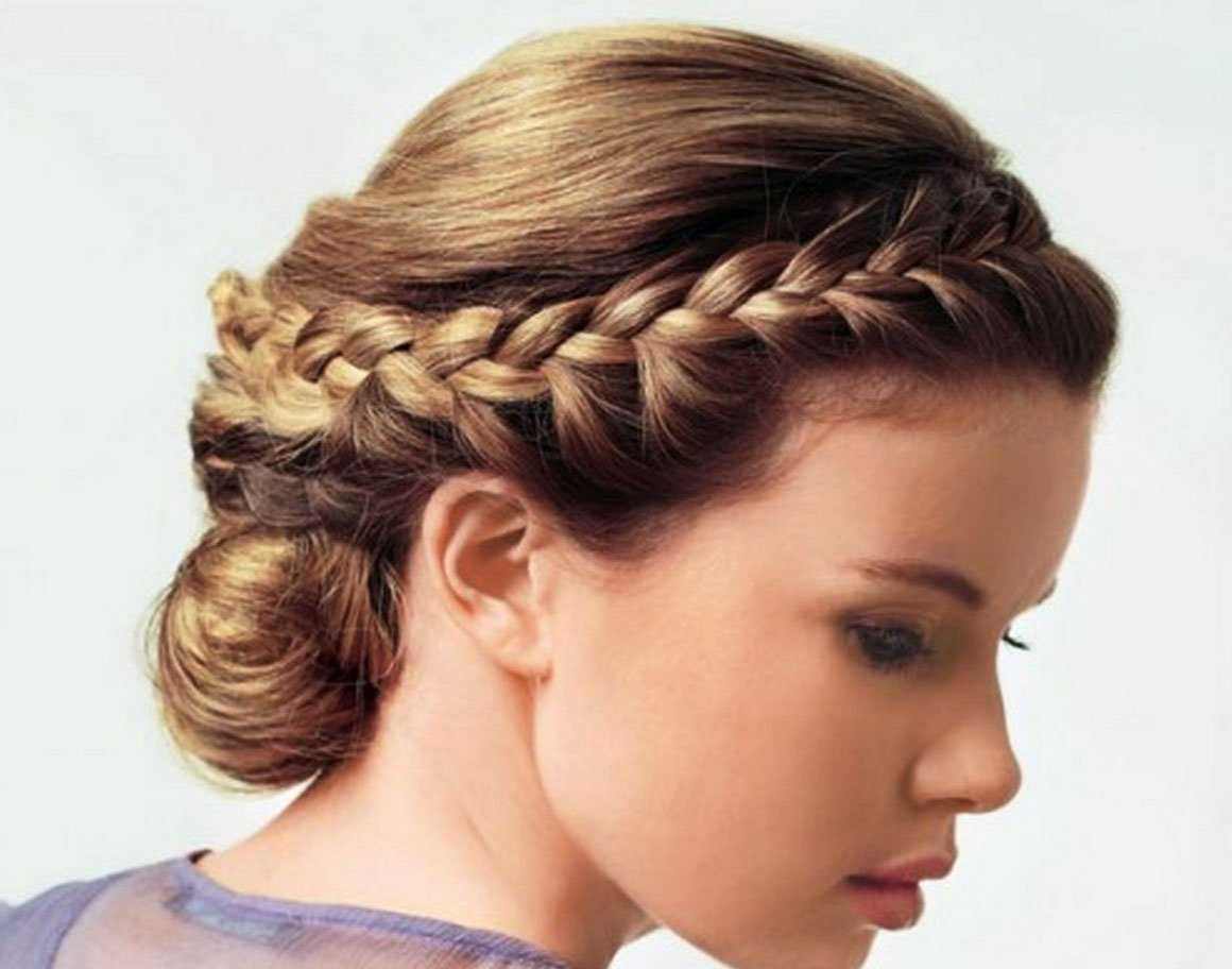 Для этого случая оптимальным вариантом станет пучок или хвост, дополненные тем или иным элементом плетения. Формирование косы можно начать как от макушки, так и от затылочной части.