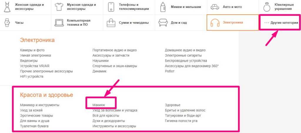 2. В перечне разделов последовательно нажмем «Другие категории» => «Красота и здоровье» => «Макияж».