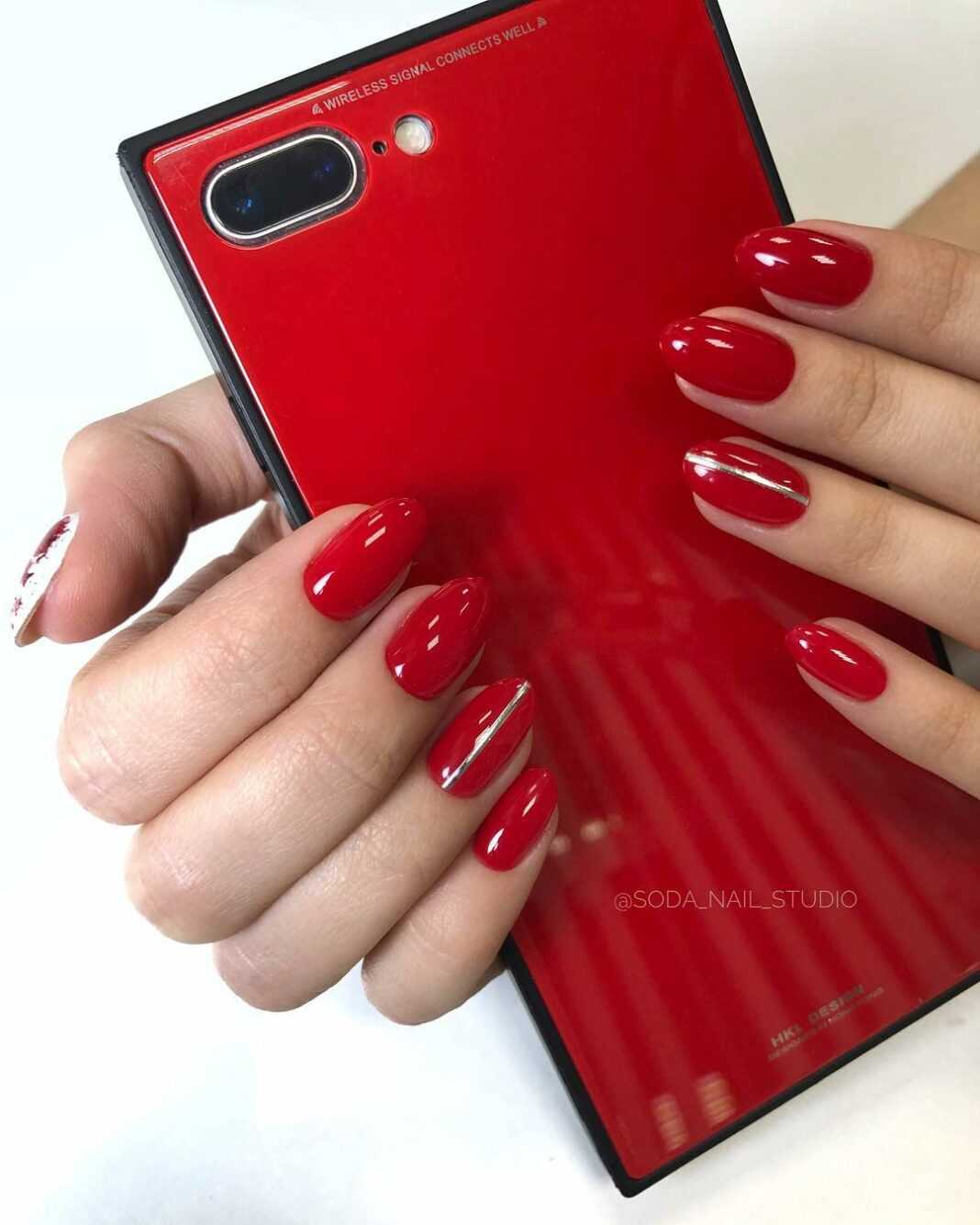 Алый цвет тоже остаётся в трендах, он прекрасно сочетается с белым френчем, лунным дизайном.