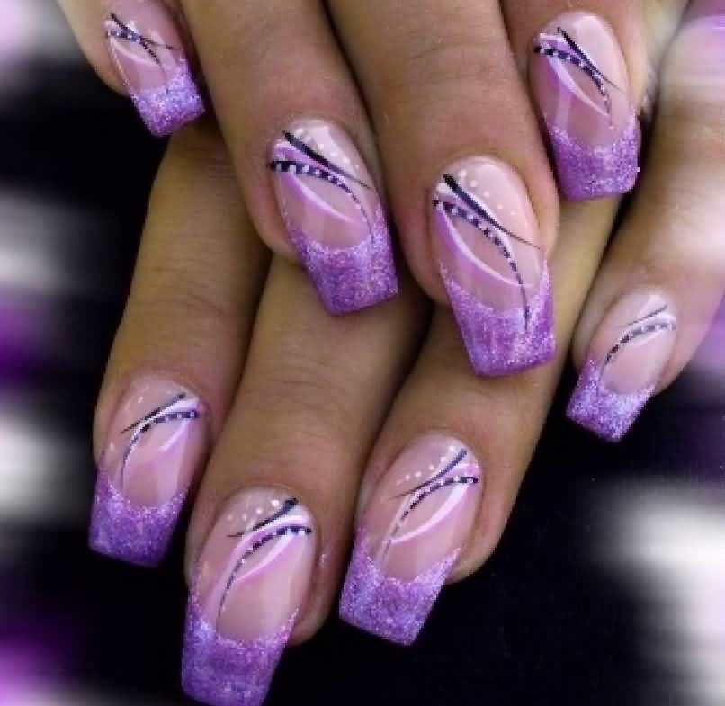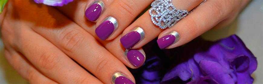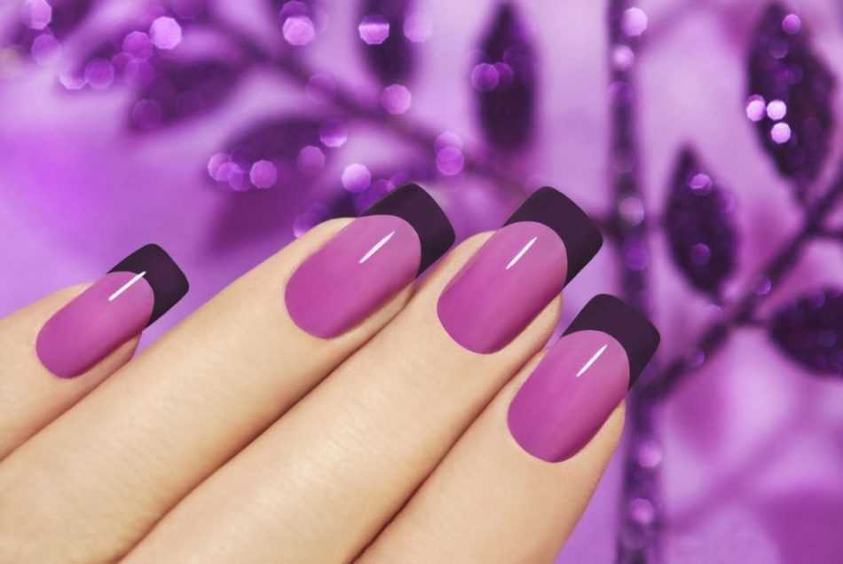Фиолетовый цвет можно использовать для создания французского маникюра. Она выглядит очень женственно и утонченно. Используйте блестки или смешанные цвета в качестве акцентов. Например, французский фиолетовый хорошо гармонирует с белым и розовым.