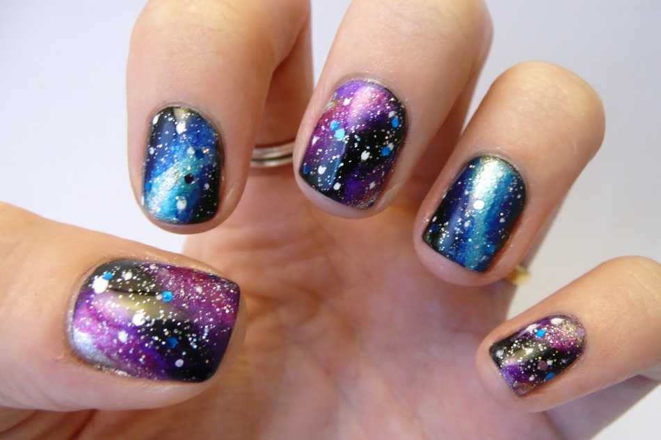 Рассмотрим пример космического нейл-арта, узнаем, как сделать его в домашних условиях.
