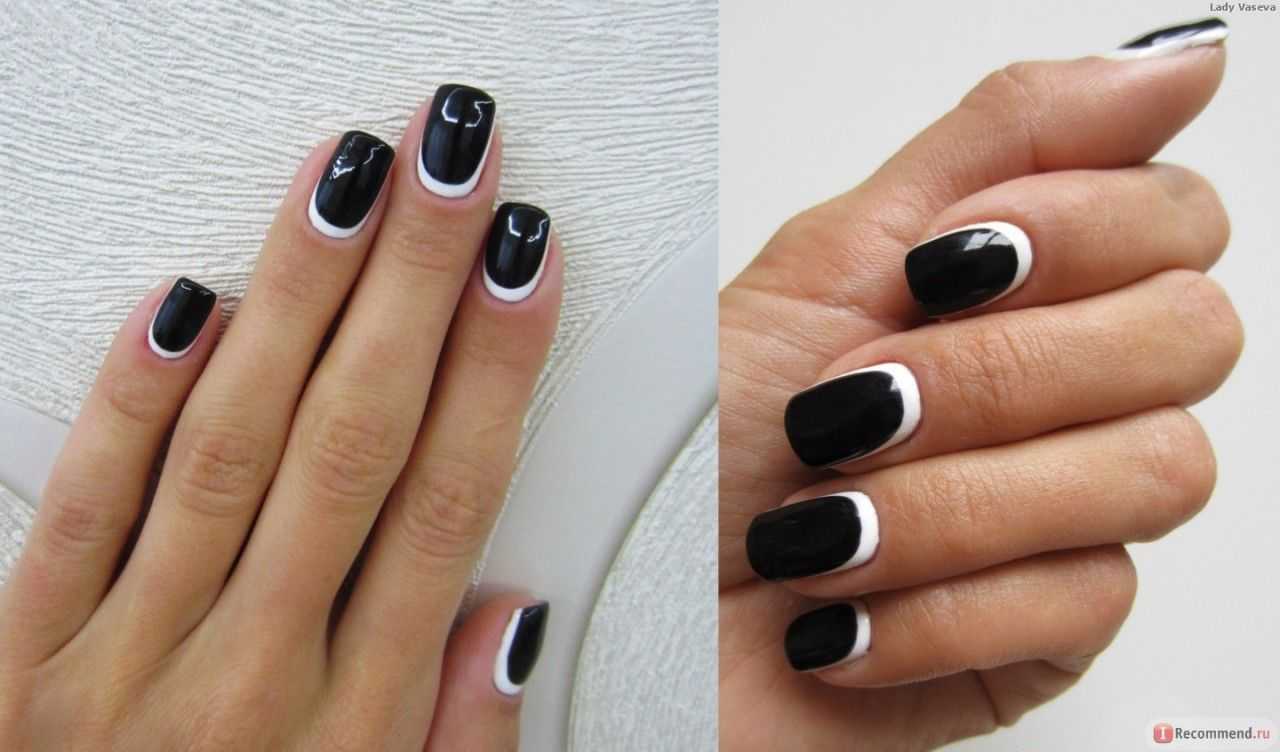 Особое достоинство обратного френча: за счет минимального декора можно сделать эксклюзивным самый простой ногтевой дизайн. Например, простое белое покрытие ногтей будет выглядеть свежо и по-новому, если одну из лунок окрасить в черный цвет.