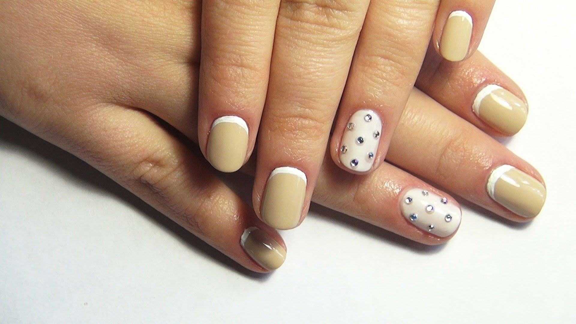Окрашивание ногтей может быть выполнено в трех цветах с разными аксессуарами: бусинами, стразами, металлическими лентами. Естественный образ придают лаки естественных тонов: персикового, бежевого, кофе с молоком. Его выполняют обычными лаками, гель-лаком, шеллаком.