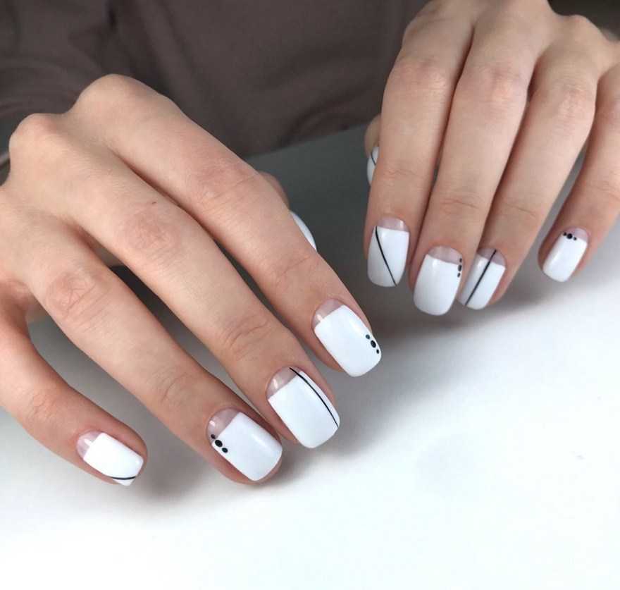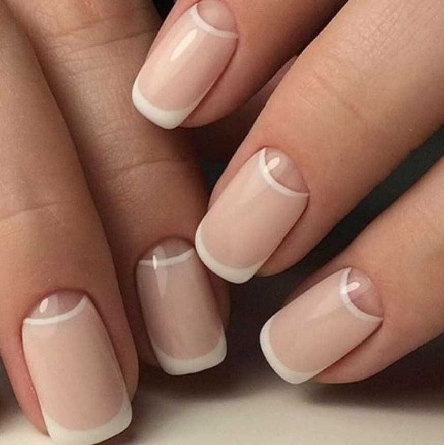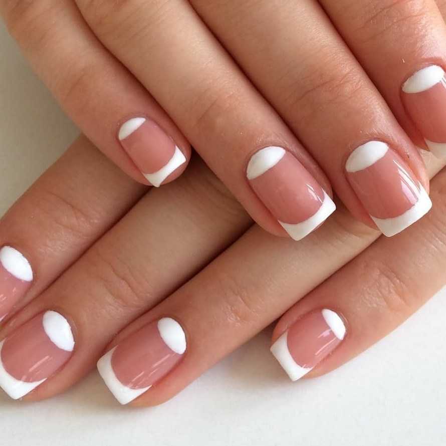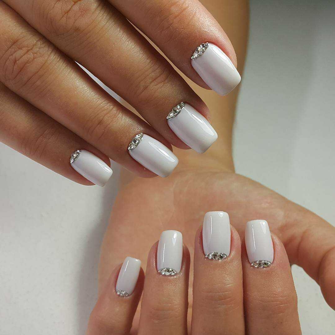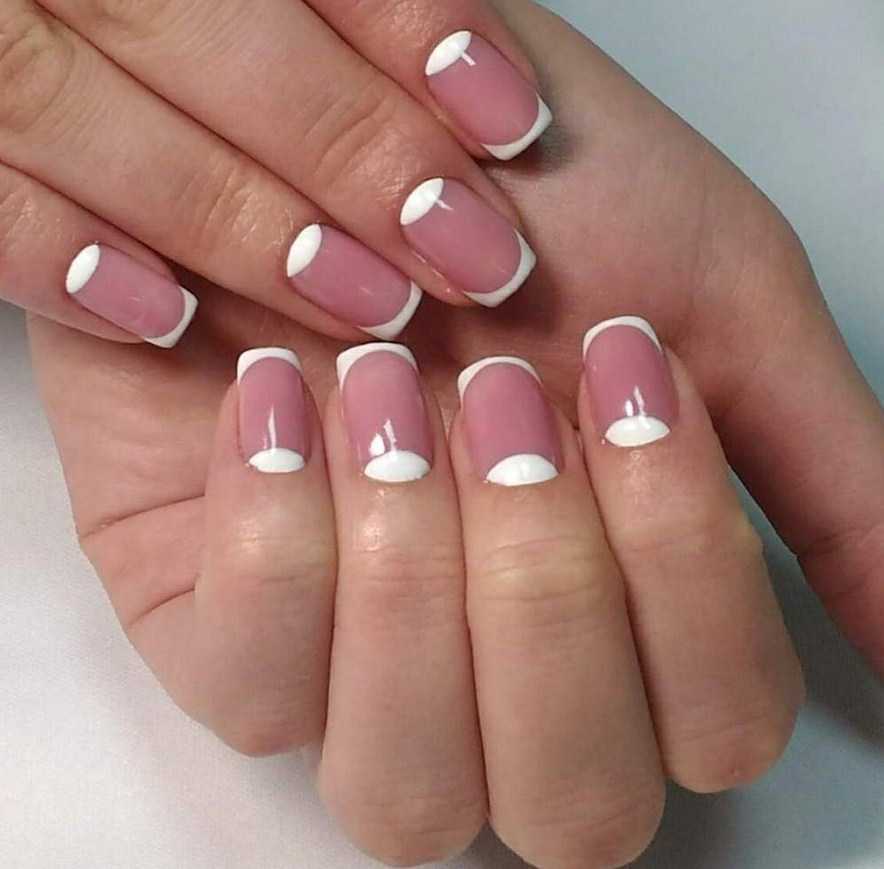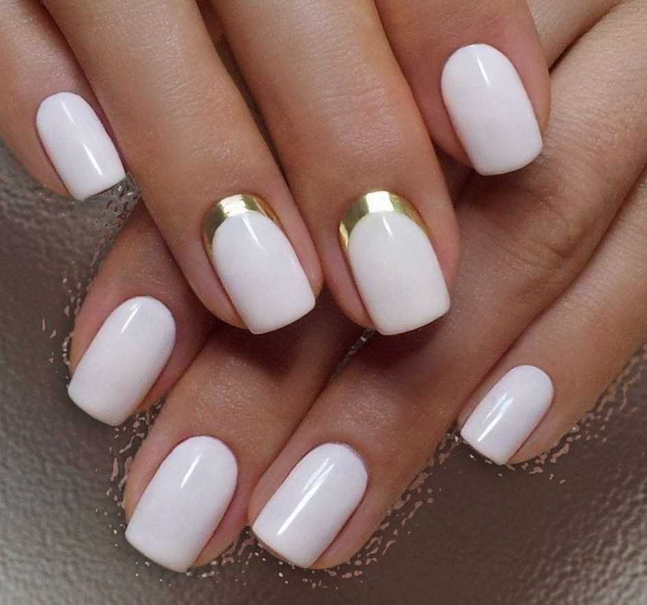 Белый. Этот цвет является нейтральным, ахроматическим, поэтому на его фоне удачно смотрятся все остальные оттенки без исключения. Белые лунки или белые основы ноготка символизируют чистоту и невинность, придают дизайну нежный вид. Также белым можно прорисовать контуры улыбок и лунул в технике двойного френча.