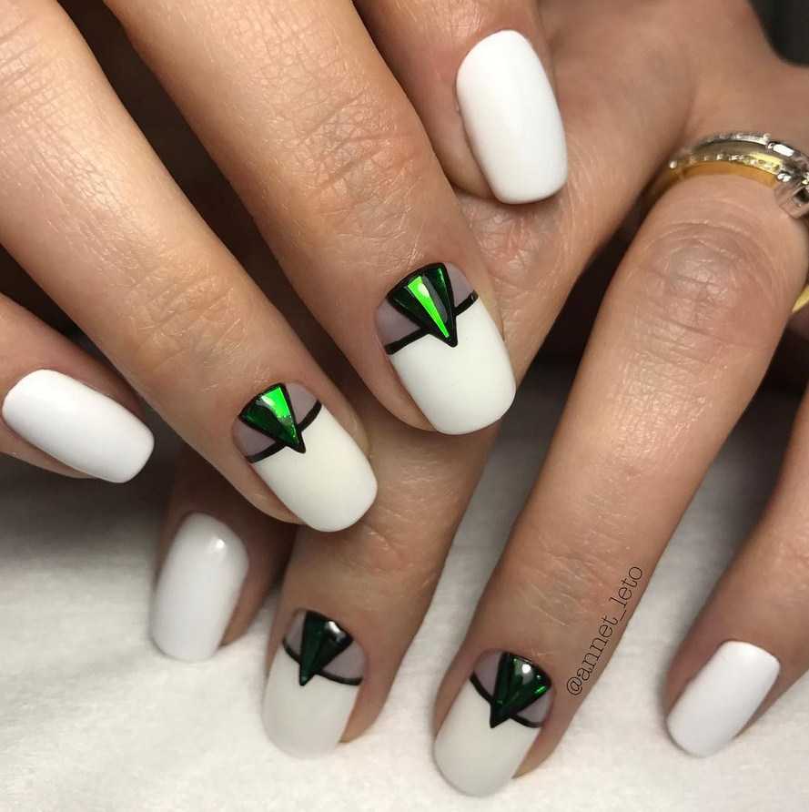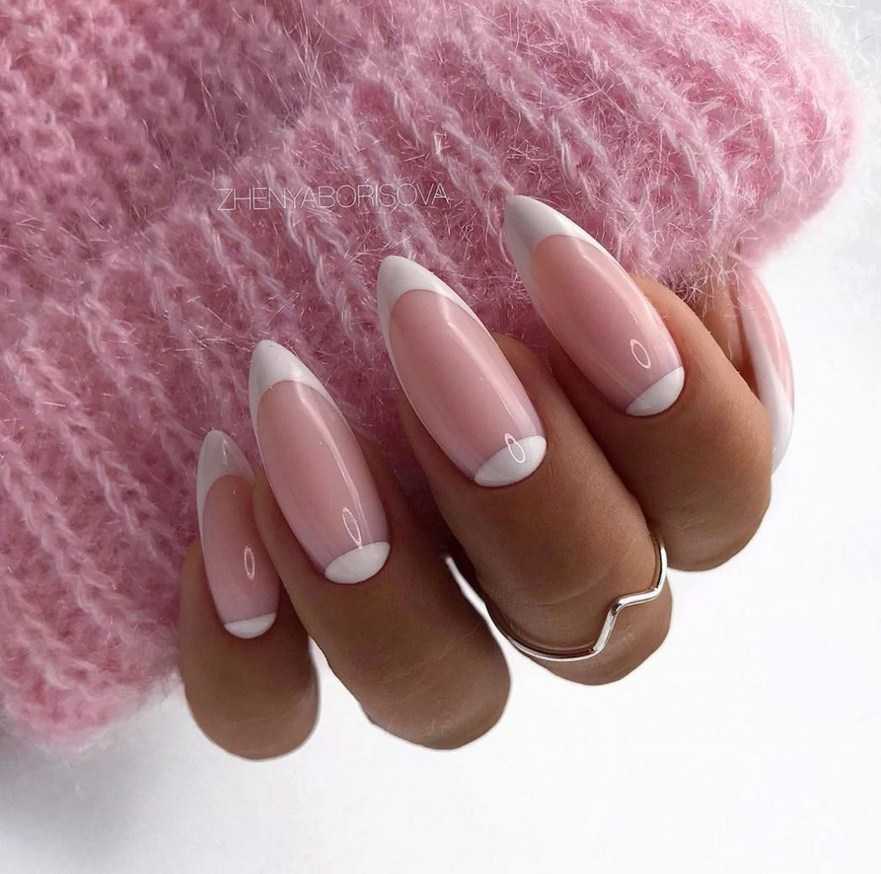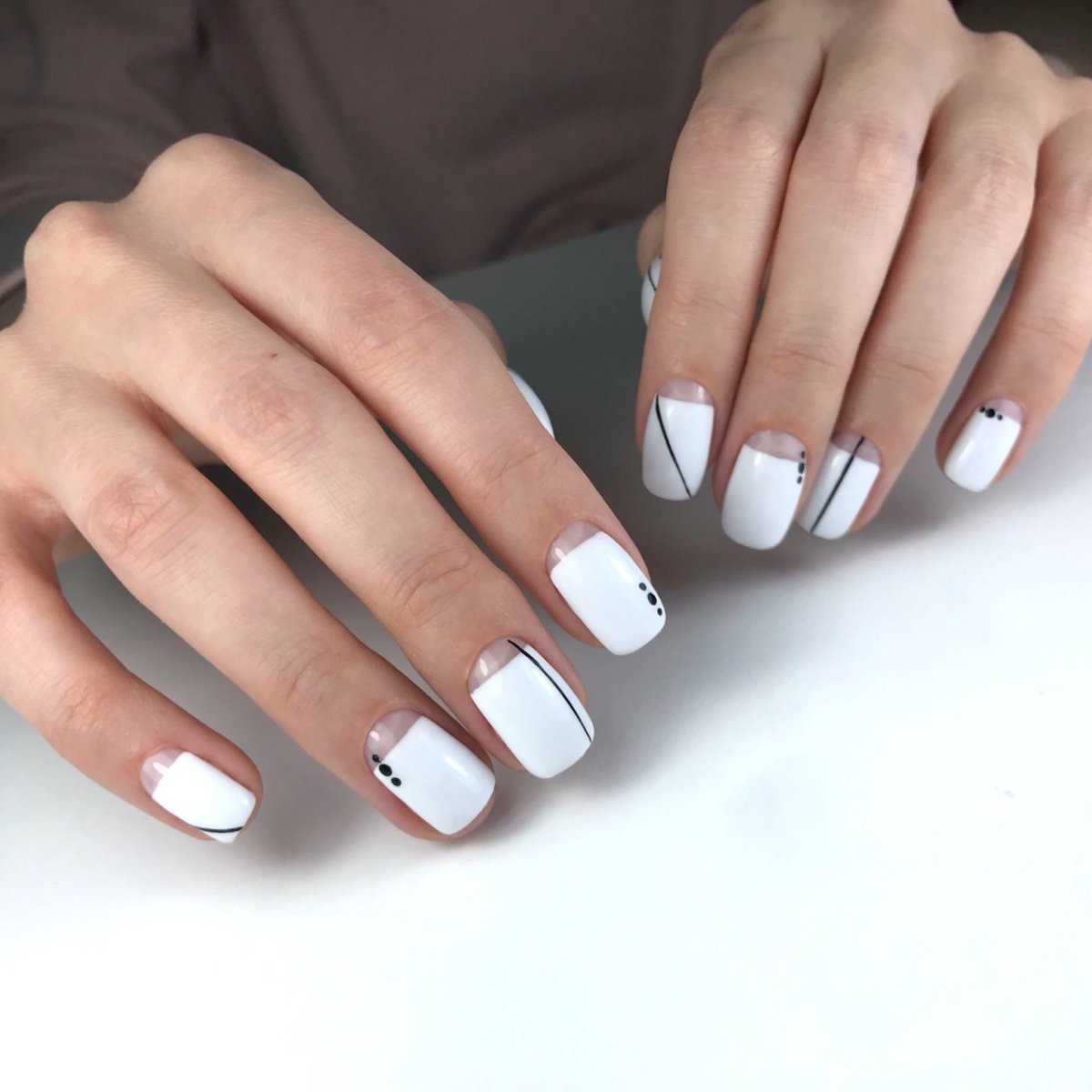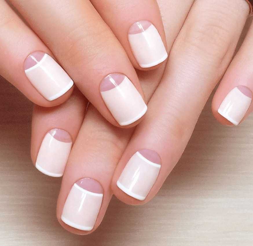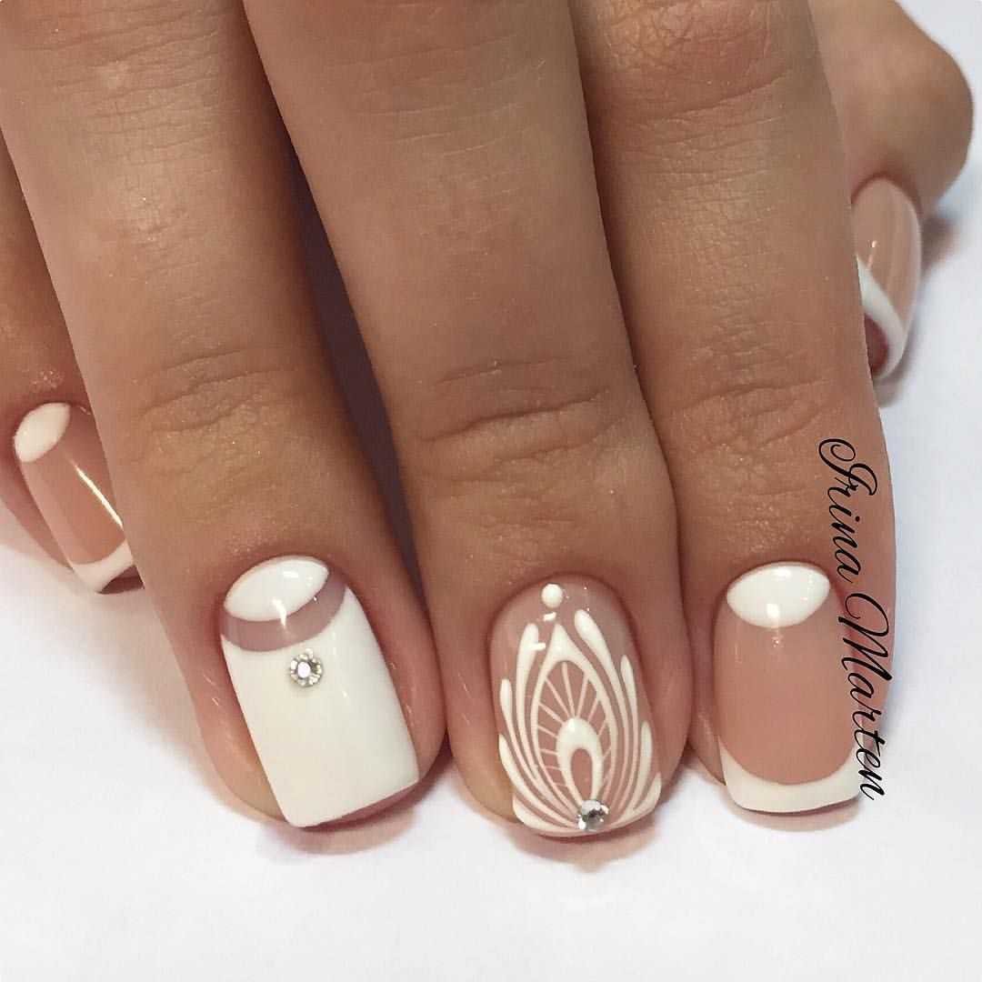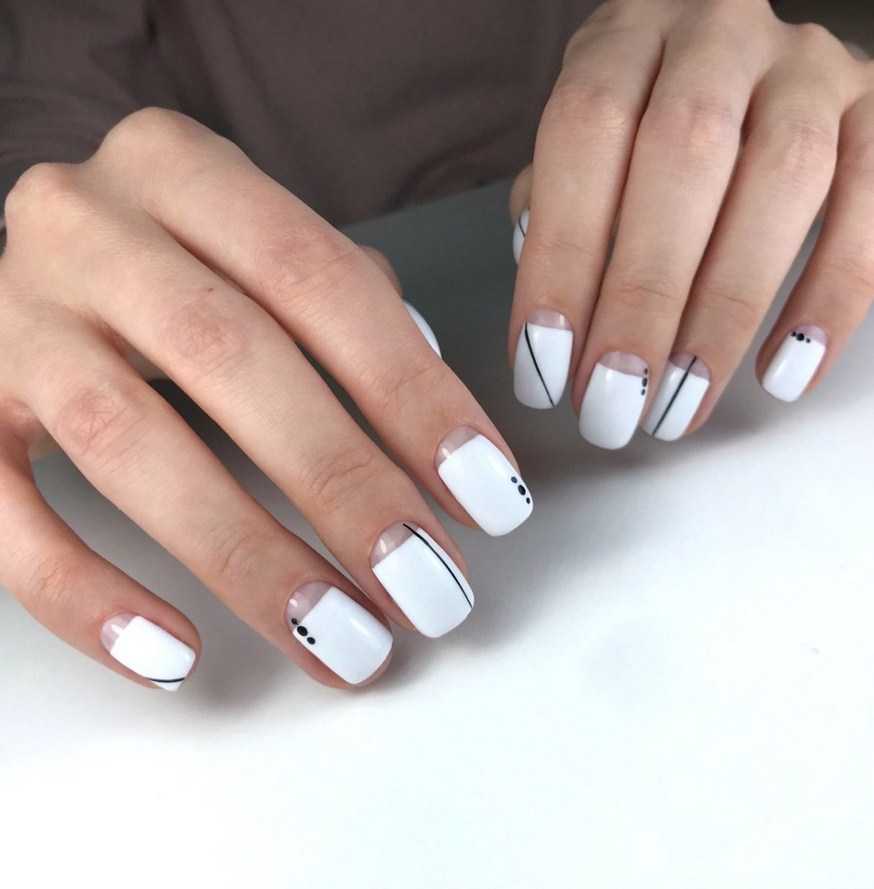 Белый. Этот цвет является нейтральным, ахроматическим, поэтому на его фоне удачно смотрятся все остальные оттенки без исключения. Белые лунки или белые основы ноготка символизируют чистоту и невинность, придают дизайну нежный вид. Также белым можно прорисовать контуры улыбок и лунул в технике двойного френча.