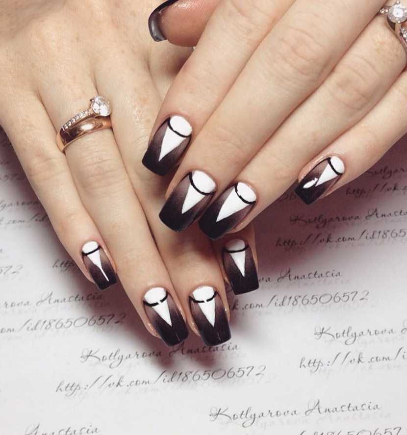 Смягчить контраст удастся с помощью серого, белого. Стразы или фольга в ограниченном количестве станут хорошим дополнением. Особого внимания заслуживает выполнение красно-чёрного маникюра в различных техниках (омбре, френч, ажур, мрамор, битое стекло).