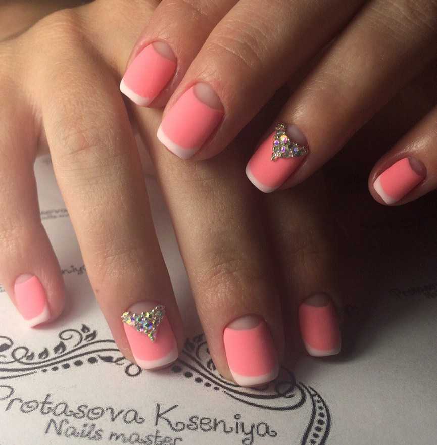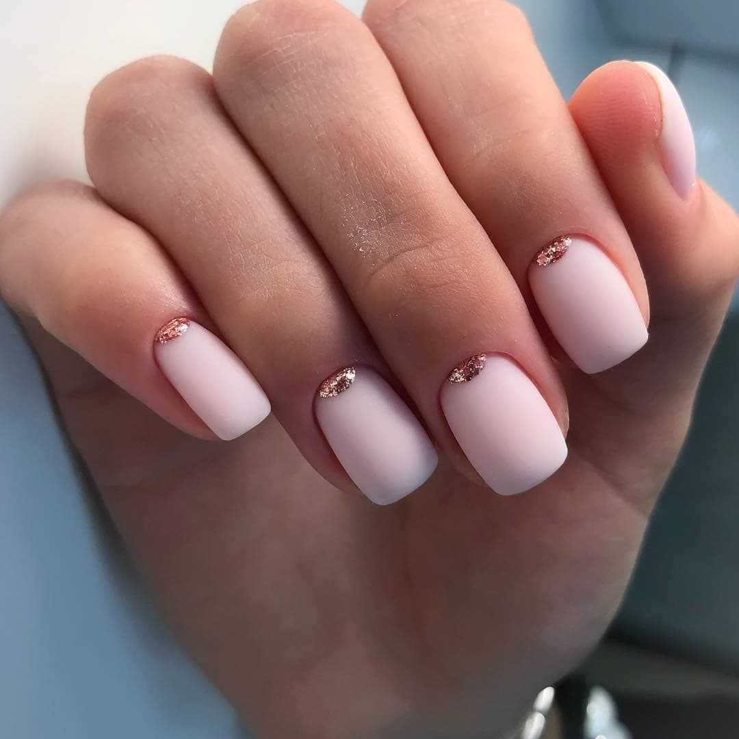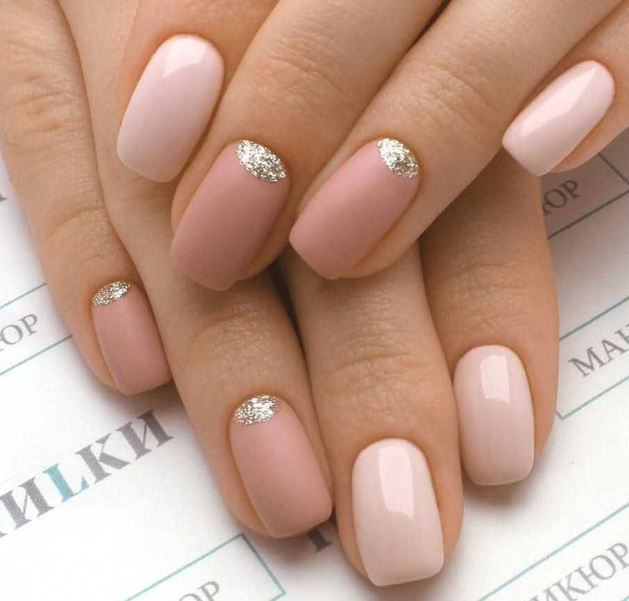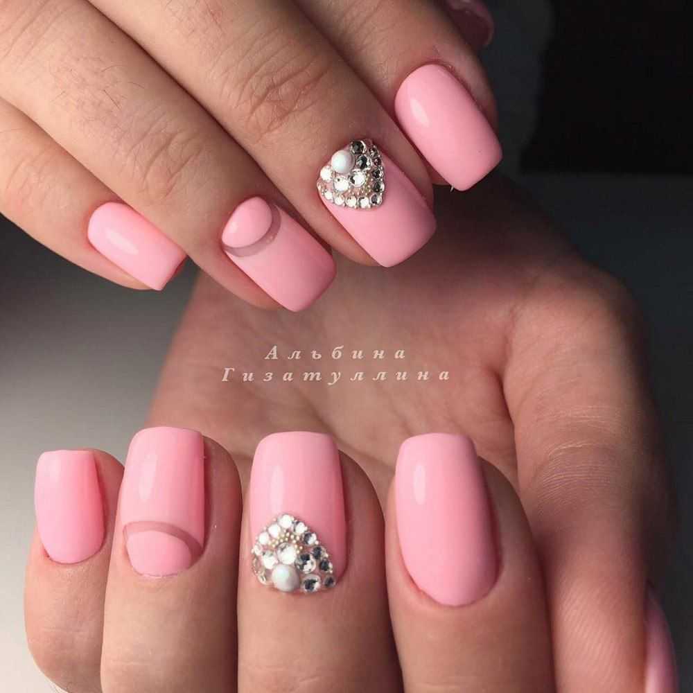 Розовый. С розовым тоном шикарно комбинируется белый, многие нюдовые оттенки. Розовыми делают и сами лунулы – все оттенки, от пудрового и дымчатого до фуксии только подчеркнут изящество дуг. Розовый дизайн красиво дополняется стразами, фольгой, глиттером.