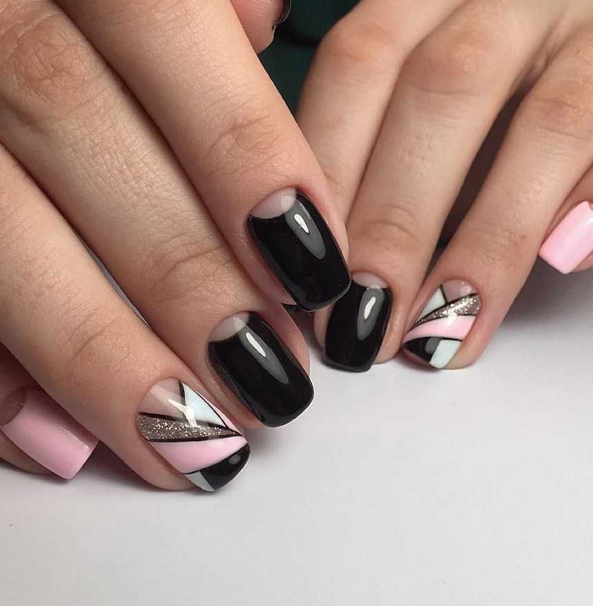 Черный. Чистый черный – ещё один ахроматический цвет, который хорошо комбинируется с другими оттенками. Стильно и броско будет выглядеть дизайн, составленный черным и любыми светлыми тонами. Лунный узор получится нежным, изысканным. С красным и прочими яркими цветами дуэт станет страстным, сочным. Очень модная вариация маникюра – черное покрытие с луной без лака.