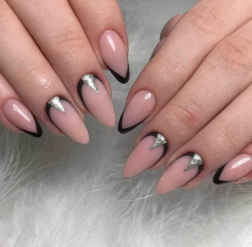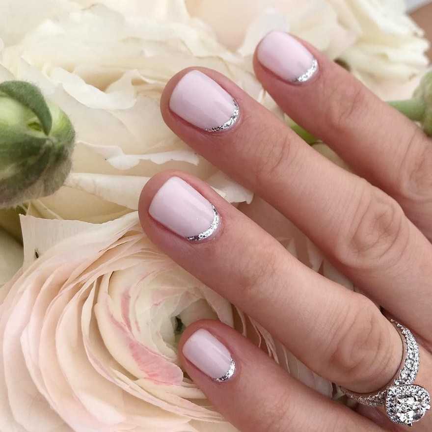 Нейл-арт 2023: серебристые переливы и золотистые блики в голливудском френче