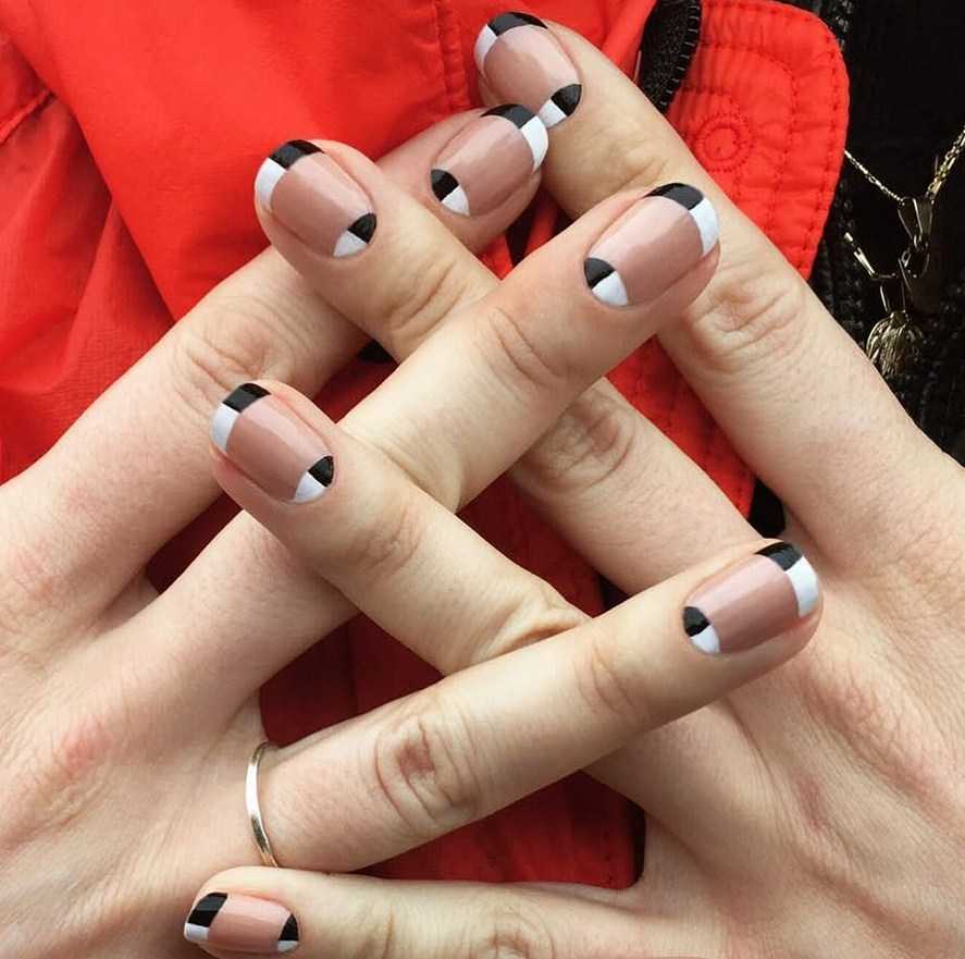 В этом сезоне популярностью пользуются черно-красные вариации маникюра на короткие ногти. Смелые цвета на ограниченной площади уже не смотрятся чрезмерно откровенно.