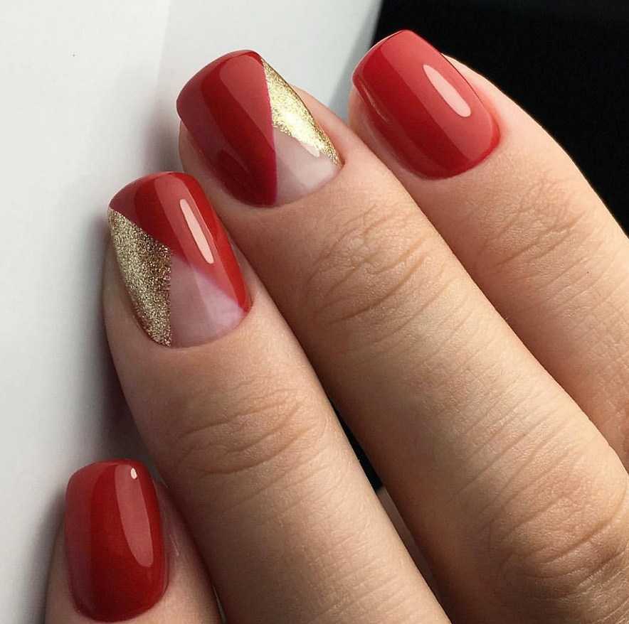 Золотой маникюр с красным лаком в первую очередь выглядит дорого и благородно, действительно королевское сочетание