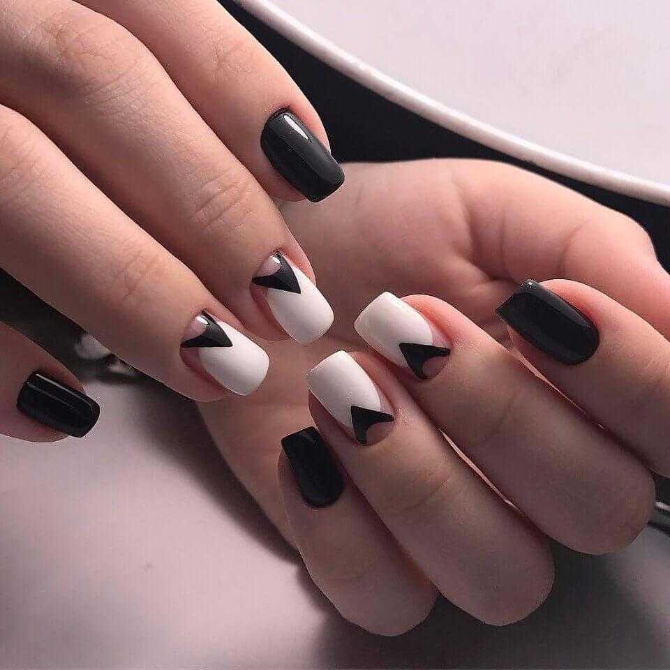 Очень стильно и нетривиально смотрится дизайн с лунулами нестандартной формы. Если классикой считается рисунок в виде полукруга, овала, то трендовый вариант маникюра – квадратные, ромбовидные лунки и даже скошенные по диагонали контуры. Особенно модными в новом сезоне становятся яркие лунулы, рисунки тёмных, насыщенных оттенков. Очень популярный лунный цвет ногтей – комбинация чёрного с серебристым металликом.