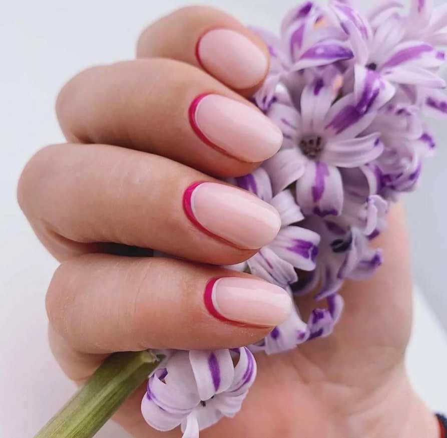 - При коротких ногтях стремитесь нарисовать тоненькую «линию улыбки» — не толще 3 мм.