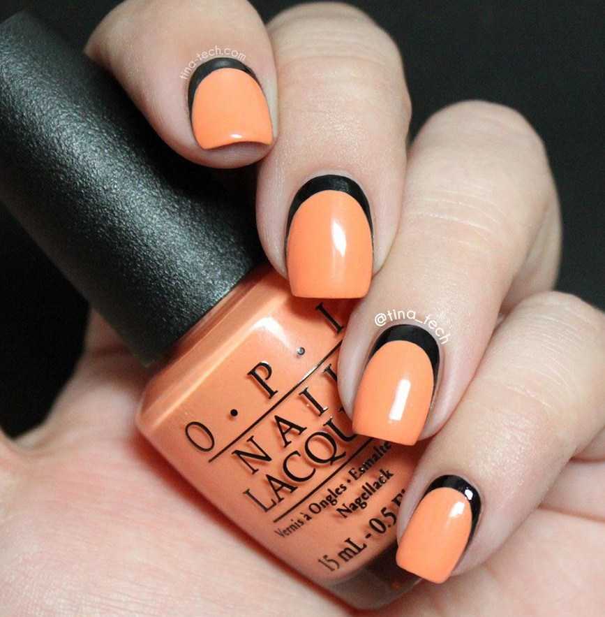- Смешивание финишного топа с оранжевым или другим цветом лака;