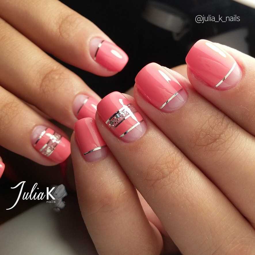 В моде нестандартное выделение лунок ногтя и свободного края, тройные и незавершенные полоски. Декорируют дизайнерскими элементами, трафаретами по вкусу.