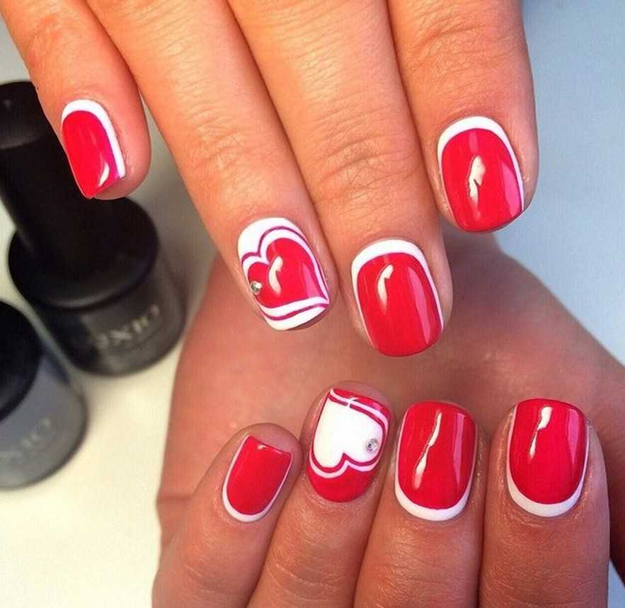 Современные лаки позволяют удачно сочетать различные варианты покрытий. Маникюр в красном цвете с использованием гелевых основ часто выполняют в виде френча, совмещённого с лунной техникой нанесения. Использование страз, блёсток, клейкой ленты в умеренном количестве подходит даже для декора коротких ногтей.