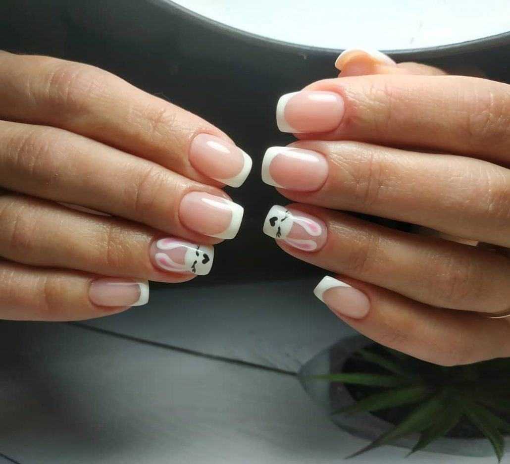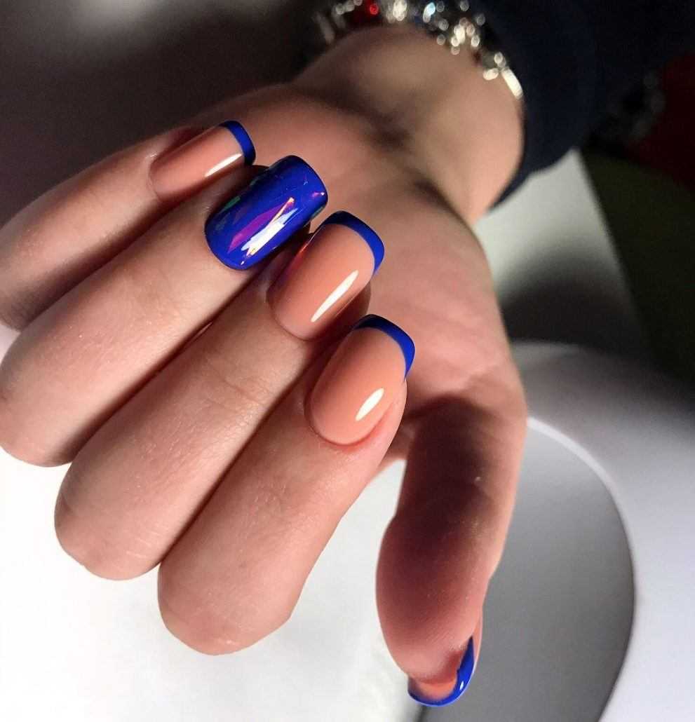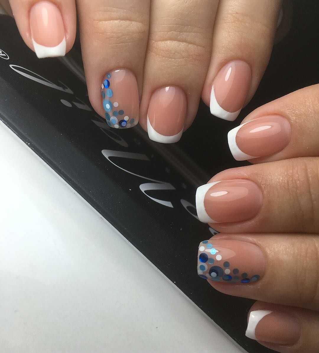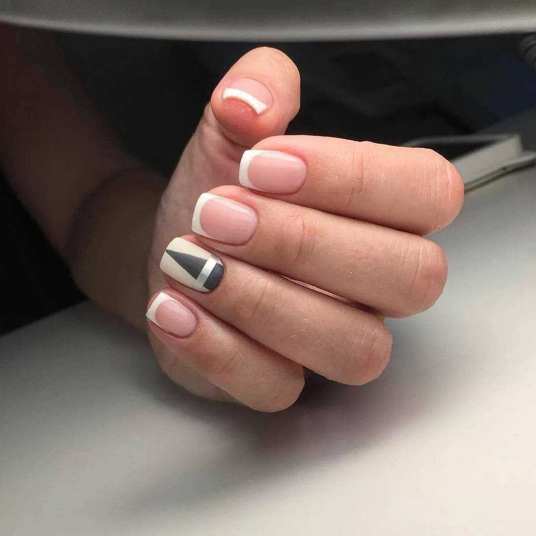 Как известно, короткие квадратные ноготки в современном мире особенно популярны. Они комфортны для повседневной жизни и не мешают заниматься бытовыми делами. Кроме того, на них можно реализовать абсолютно любую идею, в том числе френч. В таком случае главное — сделать линию улыбки немного тоньше, чем обычно. Тогда пропорции будут сохранены, а маникюр получится действительно красивым. Кроме того, на коротких ногтях можно делать френч абсолютно в любом цветом решении. Различные виды дизайна и декора также уместны для данной длины.