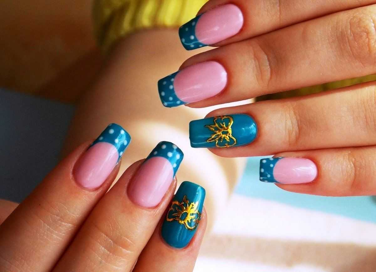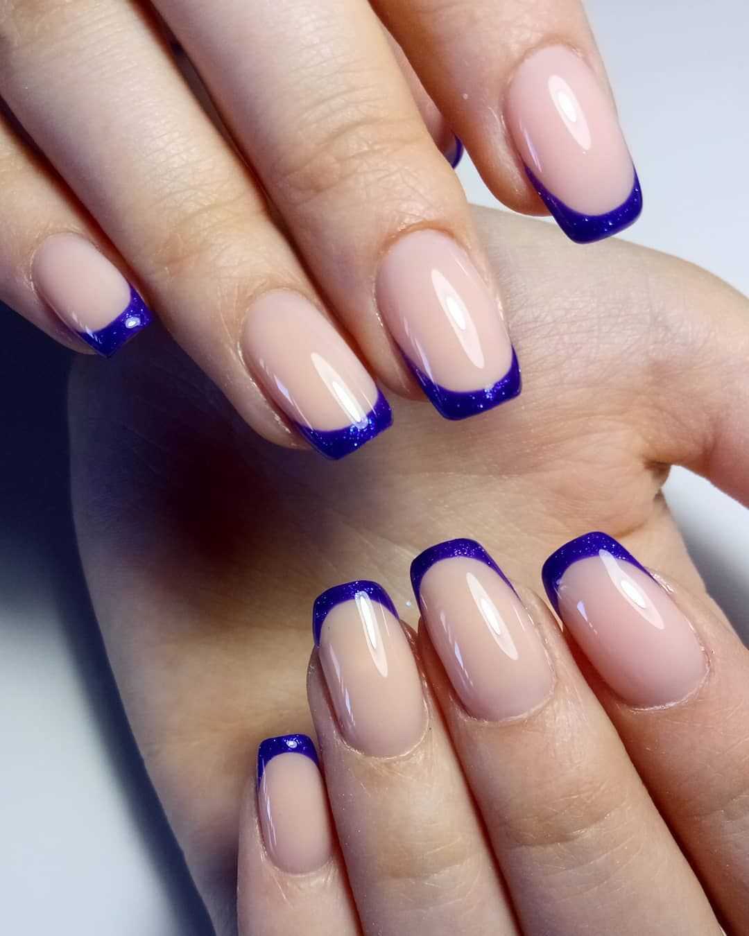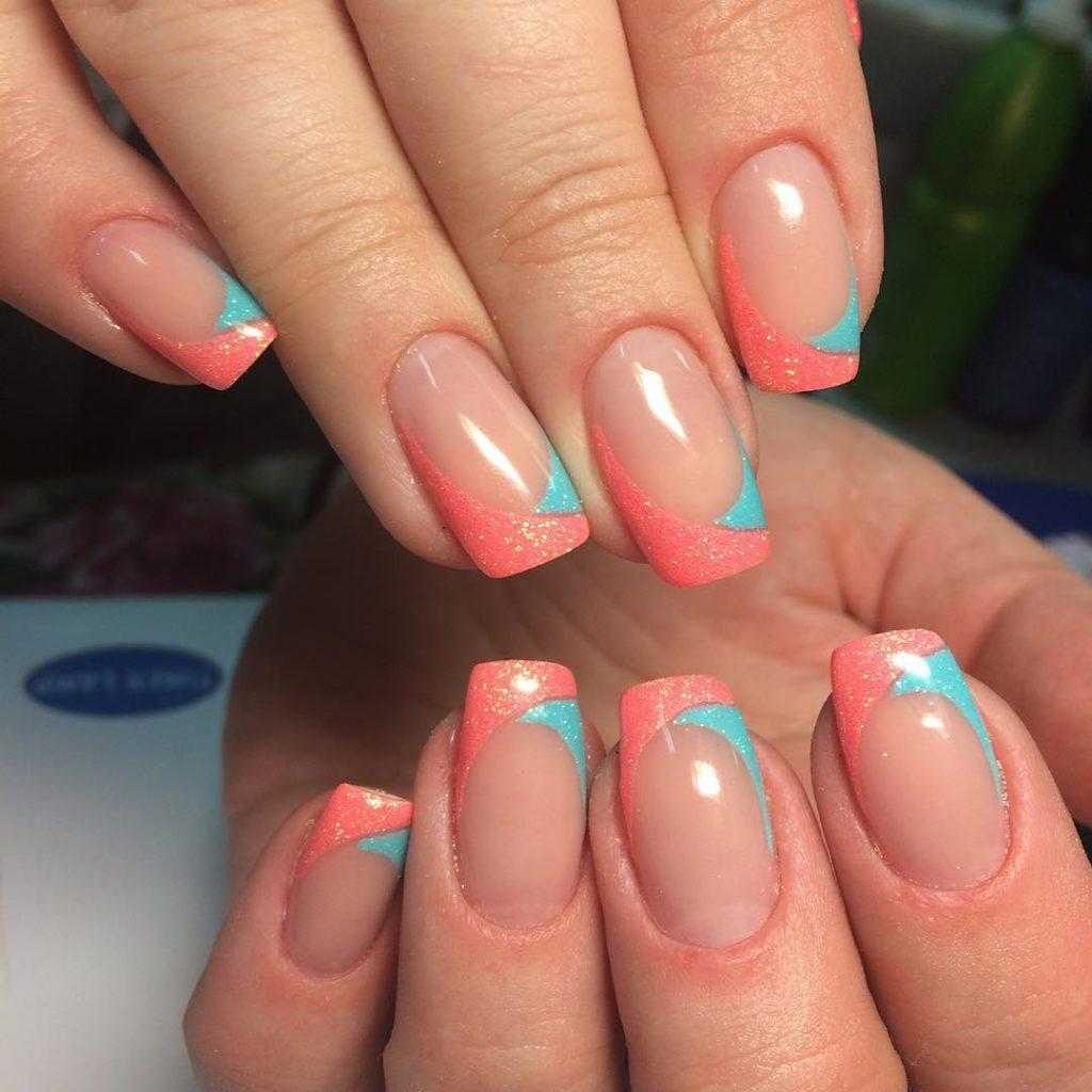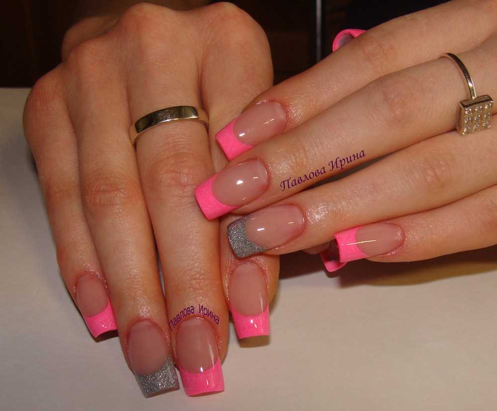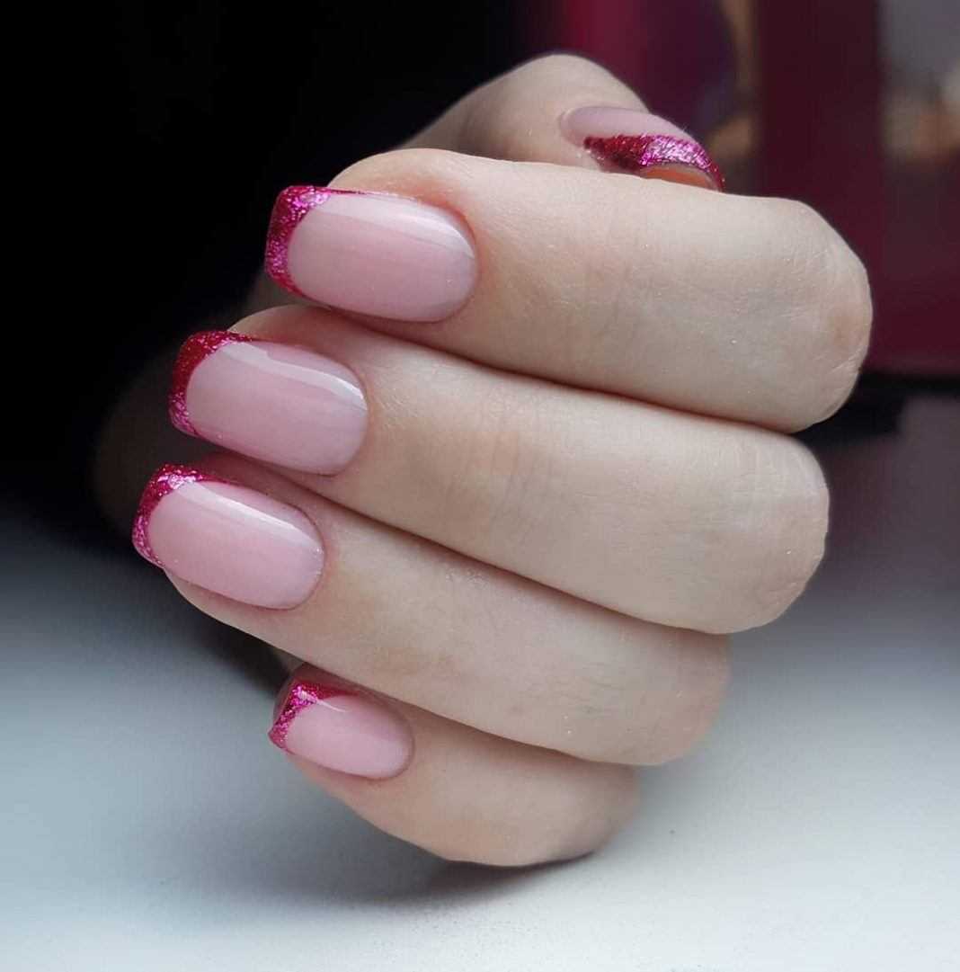 Отойти от классических канонов френча можно с помощью этой одной из самых модных разновидностей окраски ногтей. Французский маникюр может иметь нестандартное исполнение, при котором свободный край ноготка выкладывается блестящим лаком, микропылью либо блестками. Кончик ногтя также можно оформить с помощью акрила и блестящих элементов. Разумеется, все декоративные материалы должны быть некрупными и довольно плотными, чтобы край свободного ногтя не просвечивал сквозь них. Миллениум френч 2021 — это незаурядное наращивание ногтей, фото которых могут восхитить даже самую искушенную модницу. Взглянув на них, вы увидите, что ноготок или его кончик по традиции окрашивается яркими контрастными цветами. Стилисты считают, что и в этом сезоне будут актуальны контрастные сочетания, поэтому смелые девушки могут свободно экспериментировать со стилем своих коготков! Подберите вместо обычного белого, бежевого, телесного любое сочетание цветов, которое бы соответствовало вашему креативному имиджу и настроению. К примеру, рискните сделать свои ногти розовыми, обрамив кончик фиолетовым цветом. Или заручитесь удачей в виде «улыбки», выделенной золотым лаком.