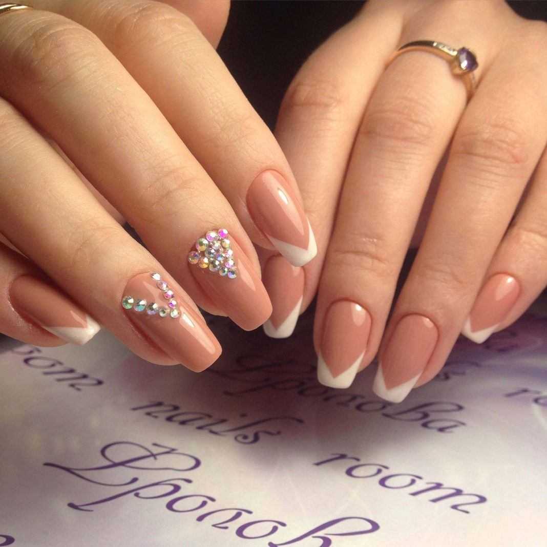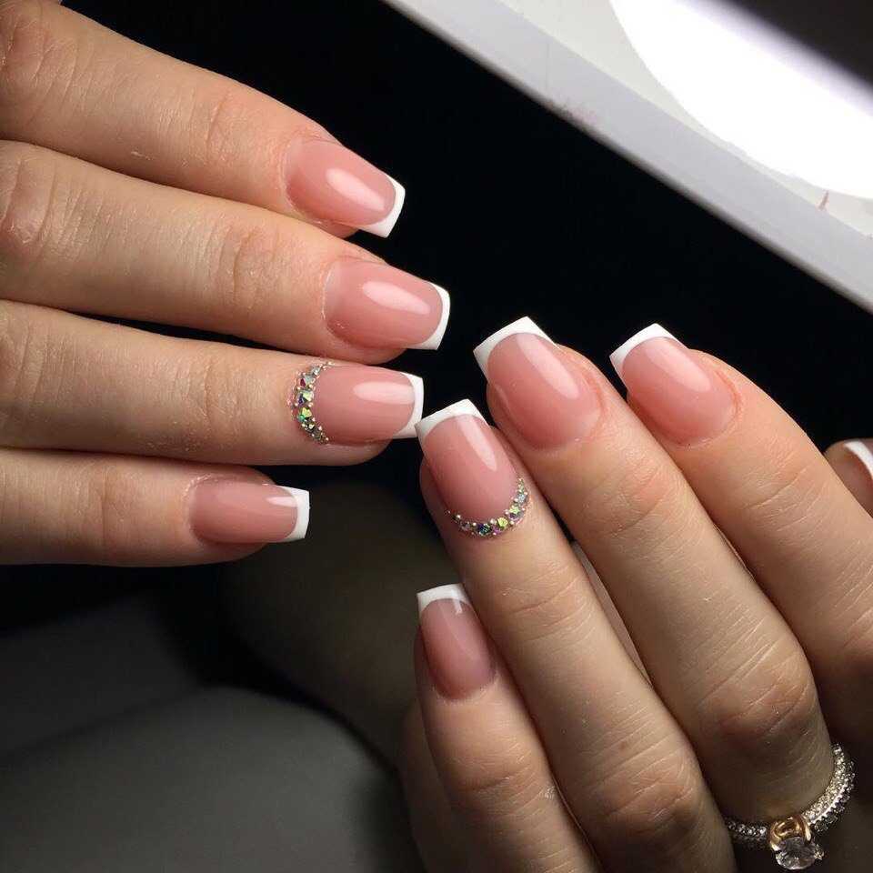 Одним из самых популярных вариантов украшения маникюра является дополнительный декор. Его интенсивность регулируется количеством деталей. Поэтому каждая модница самостоятельно может выбирать подходящий вариант. Стразы — один из самых распространенных вариантов оформления маникюра. С их помощью можно подчеркнуть линию улыбки, красоту рисунка или же выделить лунку.