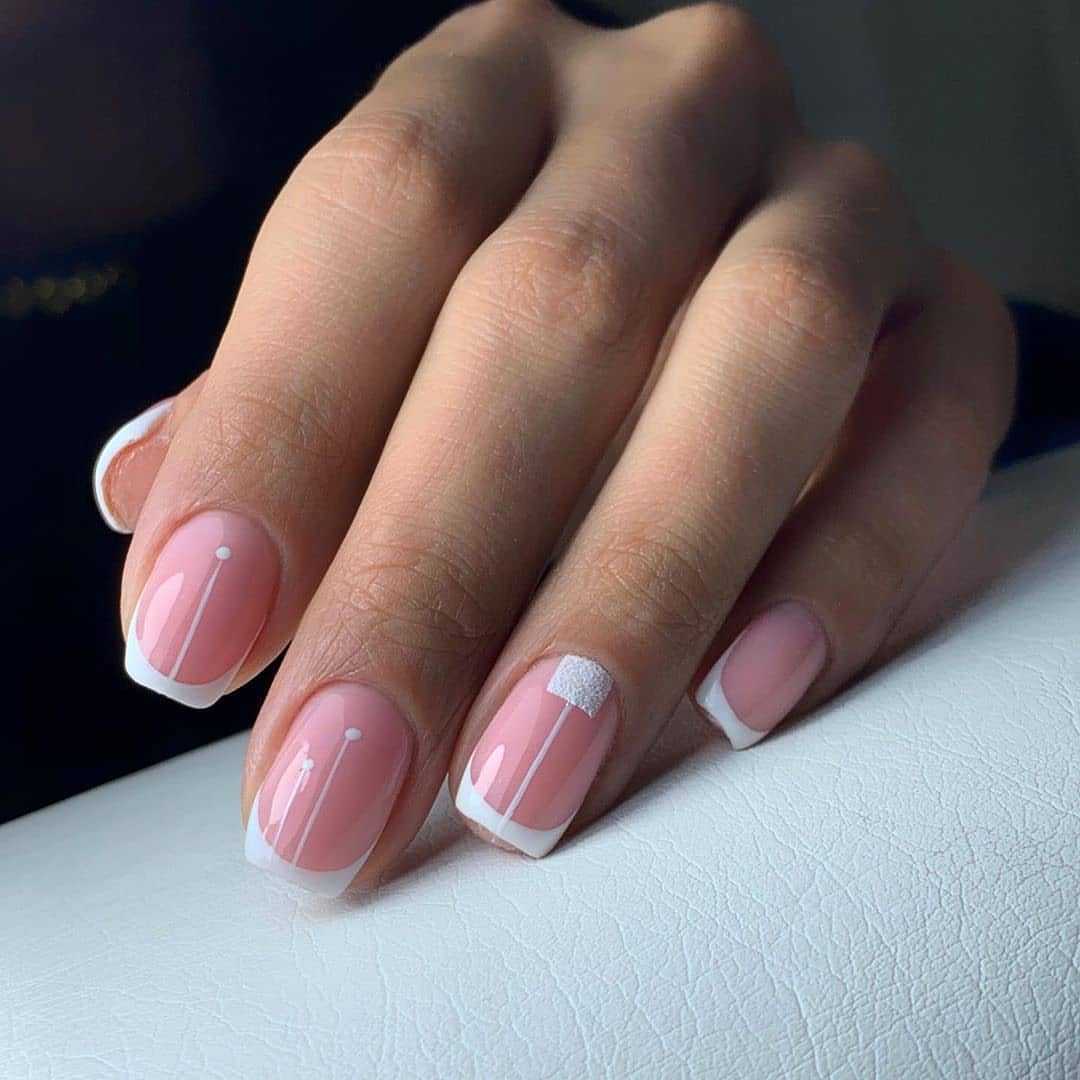Выбирайте классику двойного френча, оставляя главную линию белой, а во вторую добавляйте цвета или золотистых/серебристых оттенков. Такой маникюр всегда будет выглядеть аккуратно и стильно.