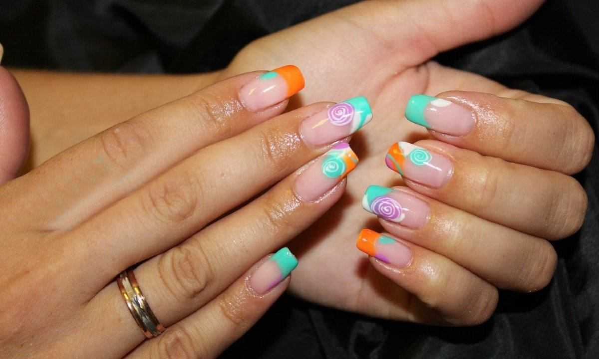 Для французского маникюра имеются привычные оттенки (белый и нюдовый тон). Но сегодня мода прогрессирует все быстрей и быстрей. Дизайн ногтей идет в ногу с модными тенденциями. Именно поэтому привычные оттенки французского маникюра сменились на разнообразные оттенки. К примеру, стиль твист подразумевает в себе не только разноцветие улыбки, но и яркие фоны. Для идеального дизайна французского маникюра используют различные виды декора: камни, трафареты, стразы, ленты, глиттер и пигменты с разнообразными эффектами. Для создания оригинального квадратного маникюра используют роспись в ручном исполнении. Дизайн делается в виде абстракции, узора или конкретного рисунка.