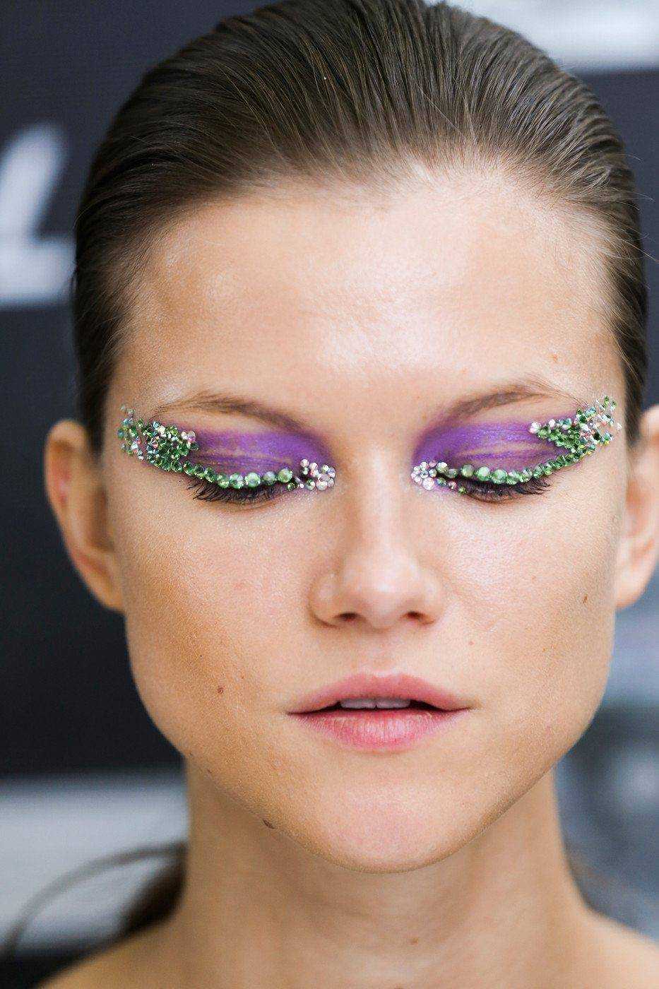 Смело используйте тени с шиммером, глиттерные жидкие тени и различные блестки в макияже глаз.