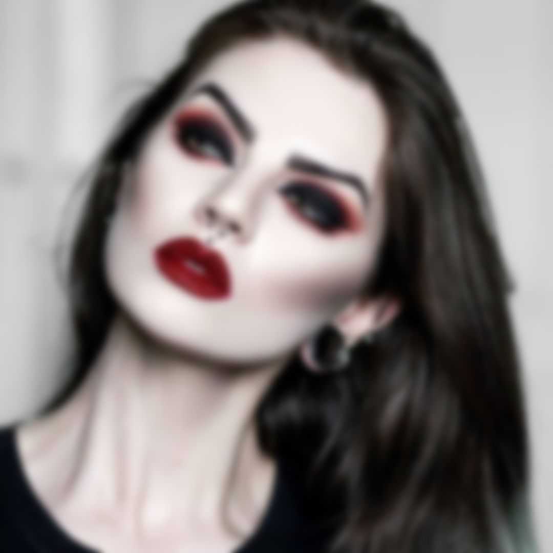 Заменив цвет теней и помады, можно создать новый образ ведьмы, сделав ей красные глаза и губы с помощью: