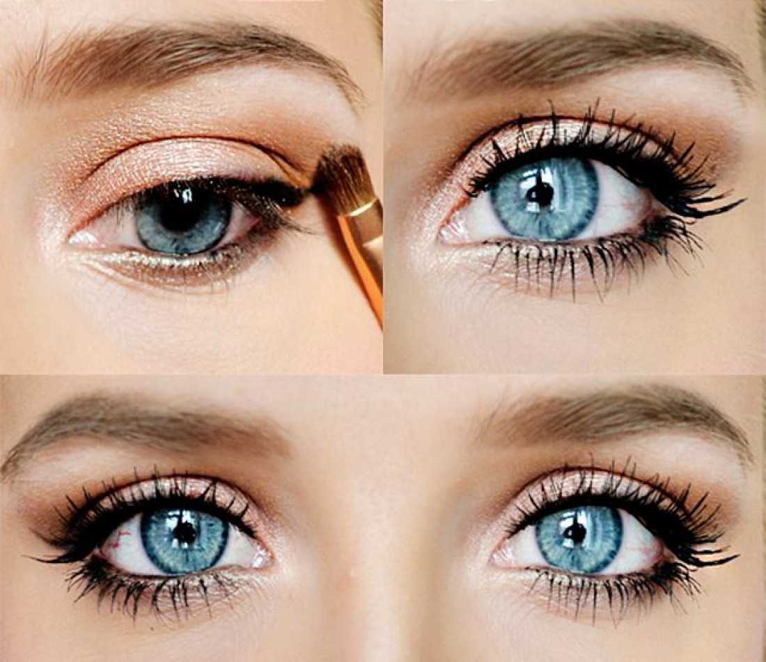 Подчеркнуть голубые глазки лучше тенями серого, белого оттенков или цвета хаки.