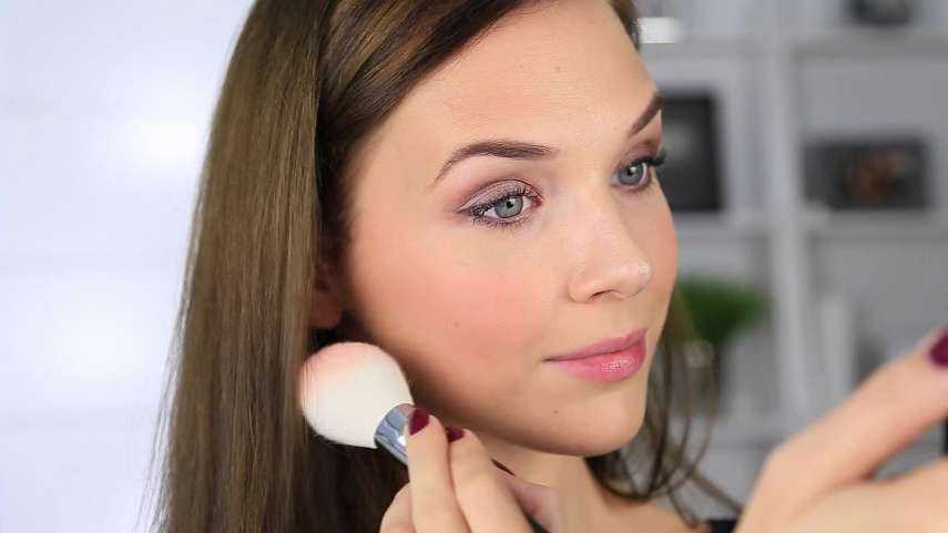 Если кожа лица слишком бледная, можно освежить ее румянами. Прекрасно подойдут нежно-розовые, персиковые, медовые оттенки матового цвета. Распределяются румяна мягкой пушистой кисточкой (желательно из натурального ворса) по направлению к вискам и тщательно растушёвываются границы.