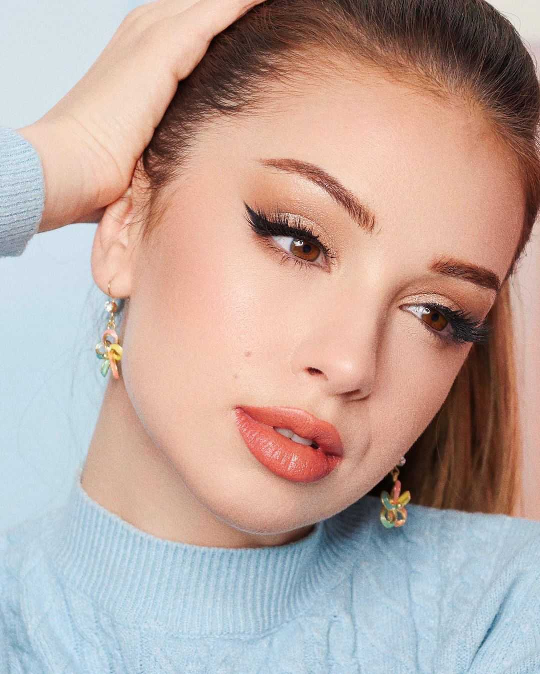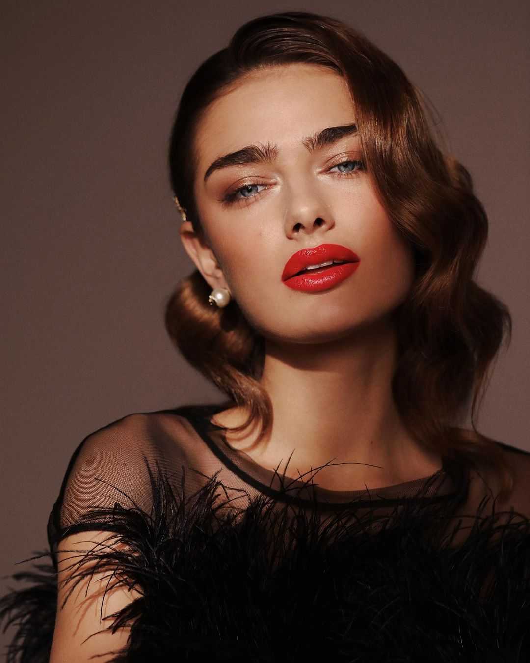 Вызывающий красный макияж для голубых глаз